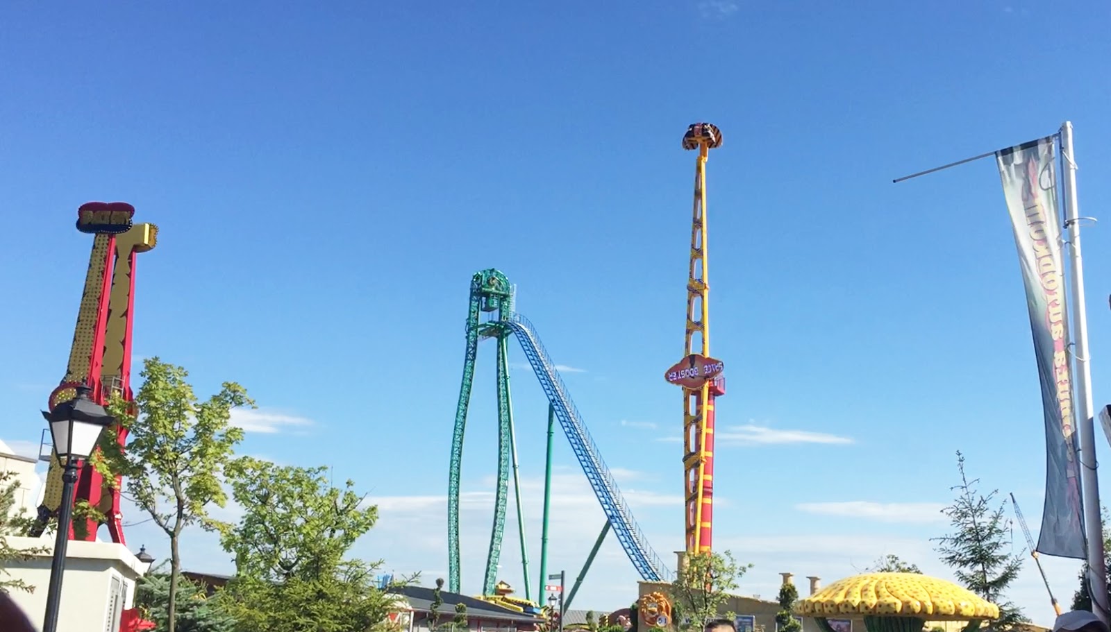 Kris pokazał nam cały plan miasteczka i wskazał atrakcje, które jego zdaniem są najbardziej odjazdowe. Oczywiście od razu poszliśmy na tego "najgorszego". Dlaczego najgorszego? Bo był mega wysoki, trasa składała się z samych zakrętów i w dodatku jechał bardzo szybko. Roller Coaster Mayan - zaliczał się do grupy tych najbardziej ekstremalnych. Ja natomiast odważyłam się na Tsunami Drop - wszyscy wjeżdżamy bardzo wysoko do góry, a potem szybko opadamy. Czujesz wtedy jakby Twoje ciało było lekkie jak piórko. O mało nie popłakałam się ze strachu, ale chętnie bym to powtórzyła :D Naszym faworytem była Formuła Roller Coaster, która w 2 sekundy rozpędza się do 80 km/h !!! Ja przejechałam się tylko raz, ale reszta grupy jeździła po kilka razy! Byliśmy jeszcze na Boomerangu i Dragon Shop. Koniec końców nie poszliśmy na żadną strefę familijną, czy bajkową :D