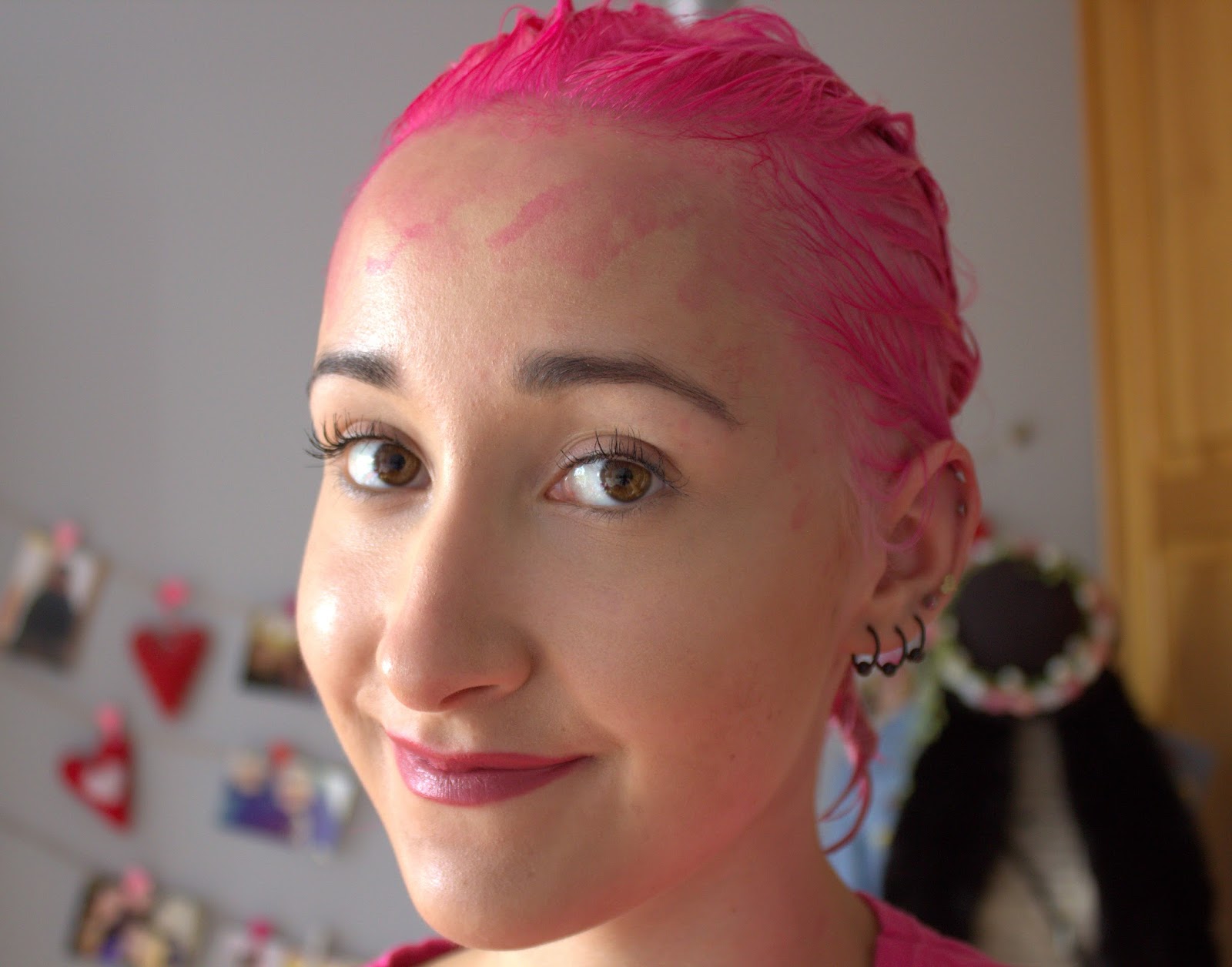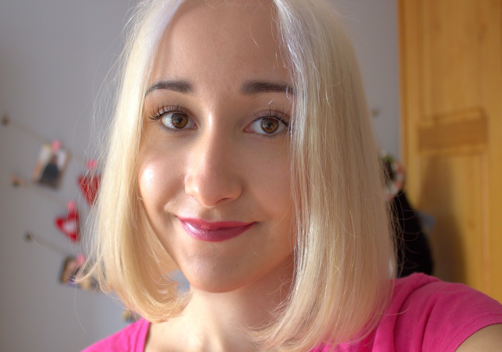 Dzięki temu, iż pianka jest koloryzacją półtrwałą, nie zawiera amoniaku i utleniaczy, co oznacza, że nie niszczy włosów! Jestem całkiem dużą niezdarą, więc przy jej nakładaniu często brudzę wszystko inne wokół mnie, włącznie z głową i innymi częściami mojego ciała. Na szczęście pianka bardzo łatwo zmywa się ze skóry, natomiast jeżeli chodzi o ubrania, jak i meble, radziłabym uważać i wszystko zabezpieczyć przed zabrudzeniem. Chciałam uzyskać efekt dosyć ciemnego i intensywnego różu, dlatego też trzymałam ten produkt na włosach ponad trzydzieści minut. Po tym czasie spłukałam z nich piankę i poczekałam, aż wyschną. Efekt naprawdę mi się spodobał, gdyż kolor nie rozłożył się bardzo równomiernie, a stworzył efekt lekkiego ombre. Włosy przy głowie przybrały bardziej intensywny kolor od tych całkiem przy końcówkach. Celowo moim zamiarem było uzyskanie bardziej intensywnego odcienia różu, gdyż kolor ten wypłukuje się z każdym myciem głowy. Gdybym trzymała piankę krócej, moje włosy byłyby o wiele jaśniejsze, przez co kolor utrzymałby się krócej na całych włosach, a także szybciej pojawiłyby się prześwity pojedynczych blond pasemek, skąd pianka się zmyła.