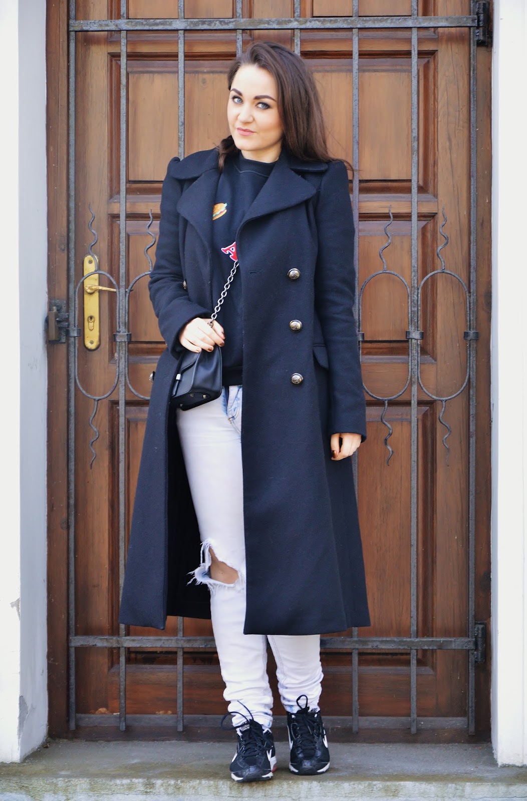 Sweatshirt- Pull & Bear/ Jeans- New Yorker/ Bag- Mango/ Sneakers- Nike/Watch- Claire's/ Coat- Zara
