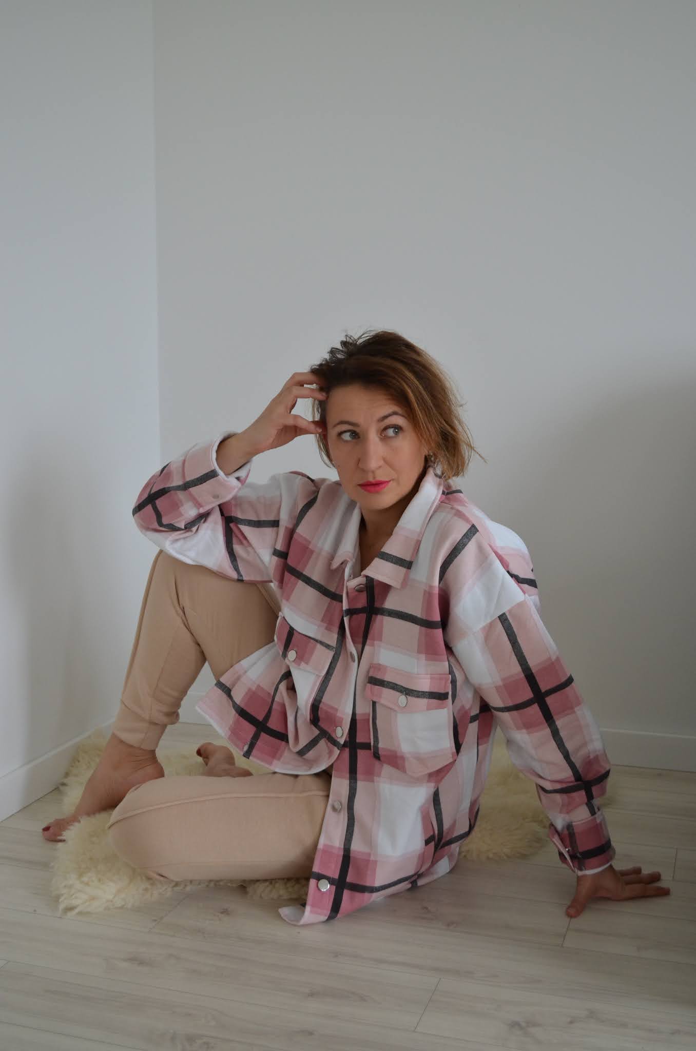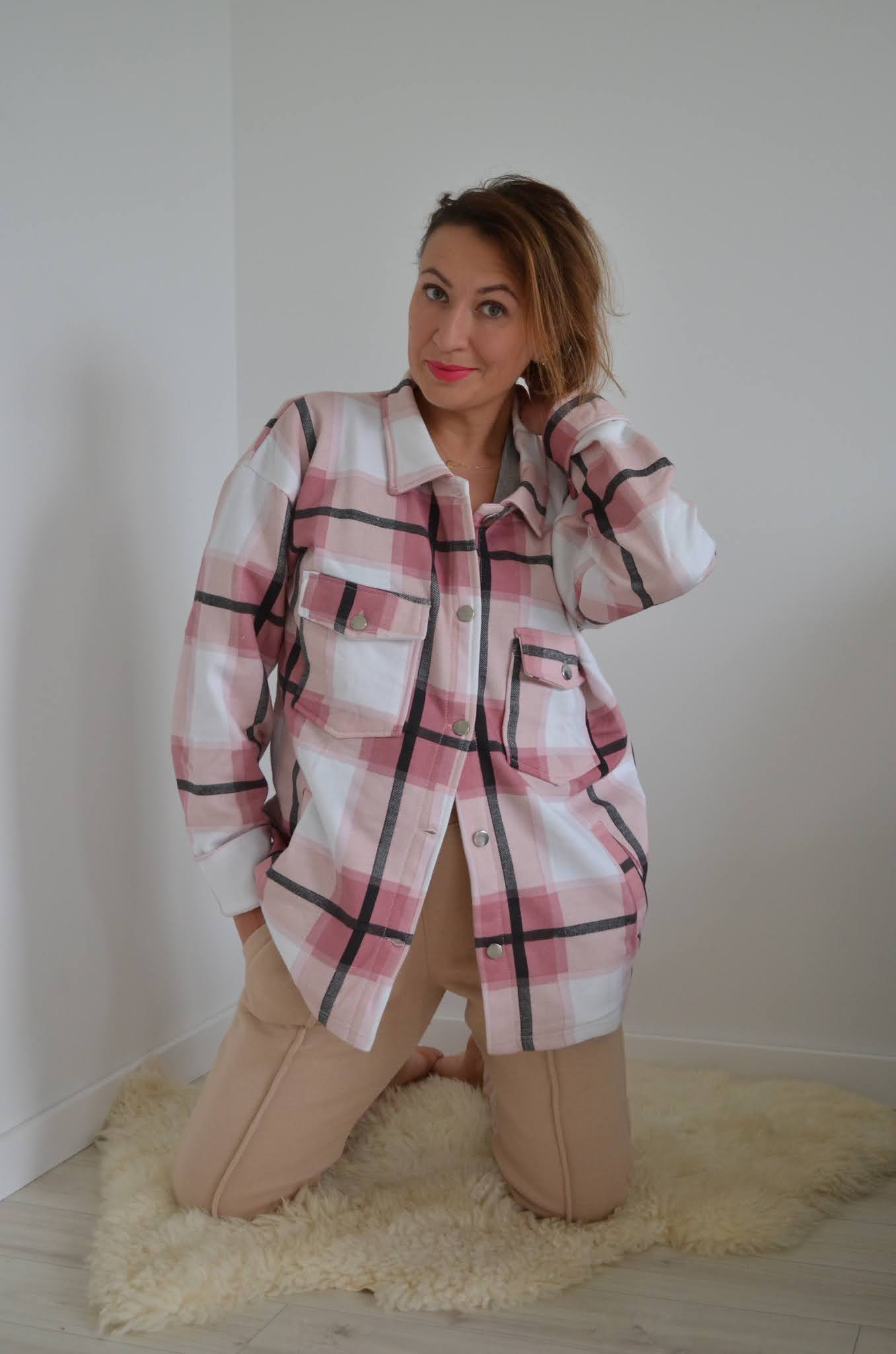 I've also styled my stone joggers with a great checked oversized shirt creating a perfect casual and sporty look.