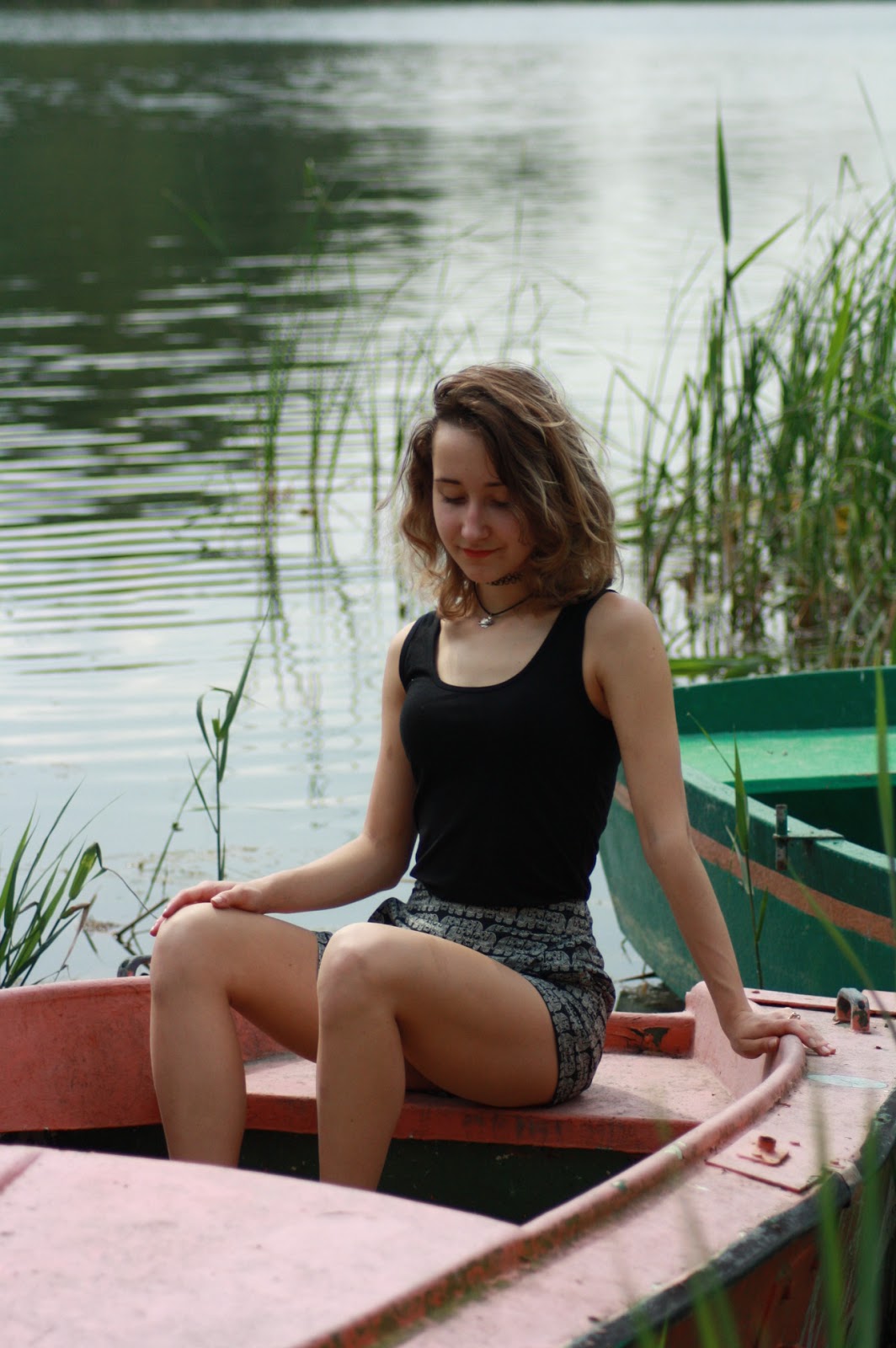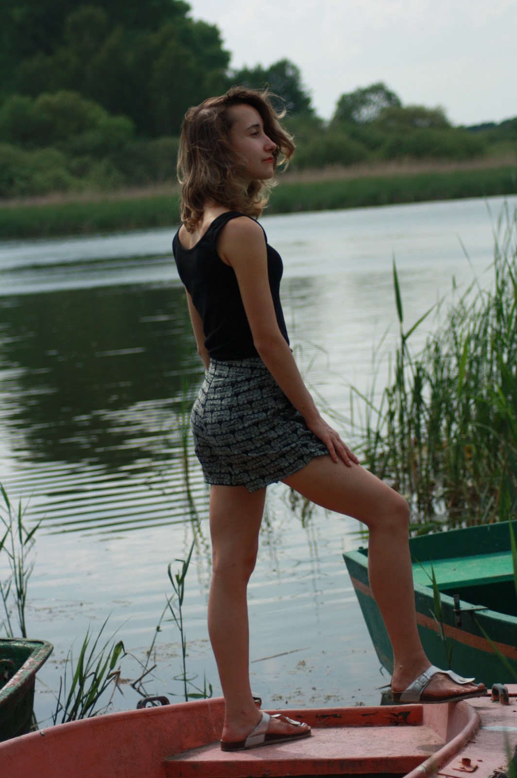 Sesję wykonał mój fotograf - Karina, w wakacyjnym klimacie, na działce. Przechodzenie z jednej na drugą kiwających się łódek było dla mnie wyzwaniem. Stylizacja jest bardzo letnia, luźna i wakacyjna.