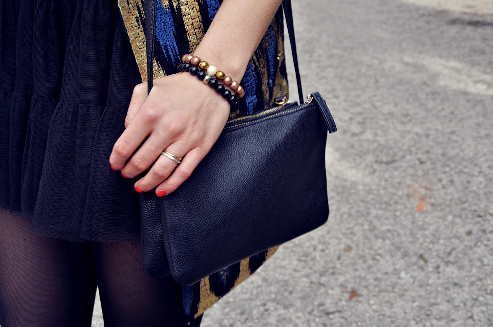Czerń to klasyka i ponadczasowość. To jeden z najbezpieczniejszych kolorów, po który chętnie sięga każda kobieta. Pasuje zarówno jako total look, a także w połączeniu z innymi kolorami. Zawsze wygląda stylowo. Oprócz nieśmiertelnego duetu czerni z bielą, uwielbiam łączyć ten kolor ze złotem. Takie kolorystyczne połączenie sprawdzi się przede wszystkim na wieczorowe i wyjątkowe okazje, bowiem szczypta złota doda luksusowego wykończenia. Dziś postanowiłam na czarny outfit, który przełamałam długim pozłacanym sweterkiem, do kupienia tu. Moim skromnym zdaniem komponuje się z całością perfekcyjnie. Cętki w takim wydaniu zdecydowanie do mnie przemawiają. Dodatek do stylizacji stanowi piękny naszyjnik, do kupienia tu, oraz mała, czarna kopertówka, którą dostałam od francuskiej firmy Kiabi wraz z zaproszeniem na ich event (już niebawem dowiecie się więcej!). Marka pojawi się w Polsce już 23 kwietnia, a ja mogę Wam zdradzić, że mają naprawdę ciekawe rzeczy i myślę, że wpiszą się w gusta wielu miłośniczek mody. Ta torebka to tylko taki mały przedsmak :-) Jak Wam się podoba całość?