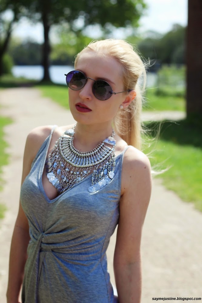 Wir bleiben noch beim Boho-Stil, aber diesmal in anderer Farbgebung :) Ein graues Kleid, silbernern Schmuck, schwarze Accessoire und fertig ist der Look!