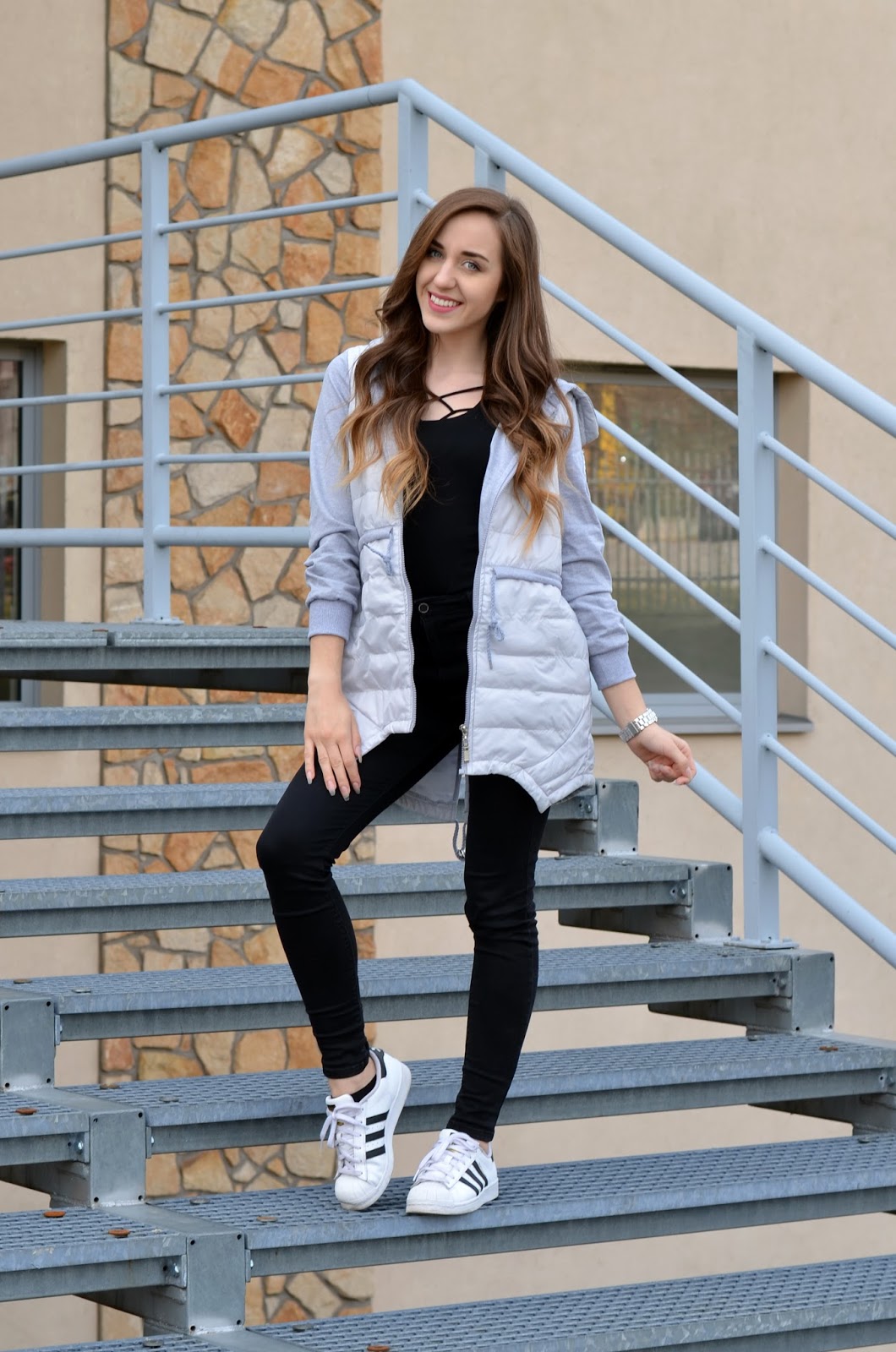 kurtka GOODLOOKIN, ramiączka Promees, buty Adidas Superstar