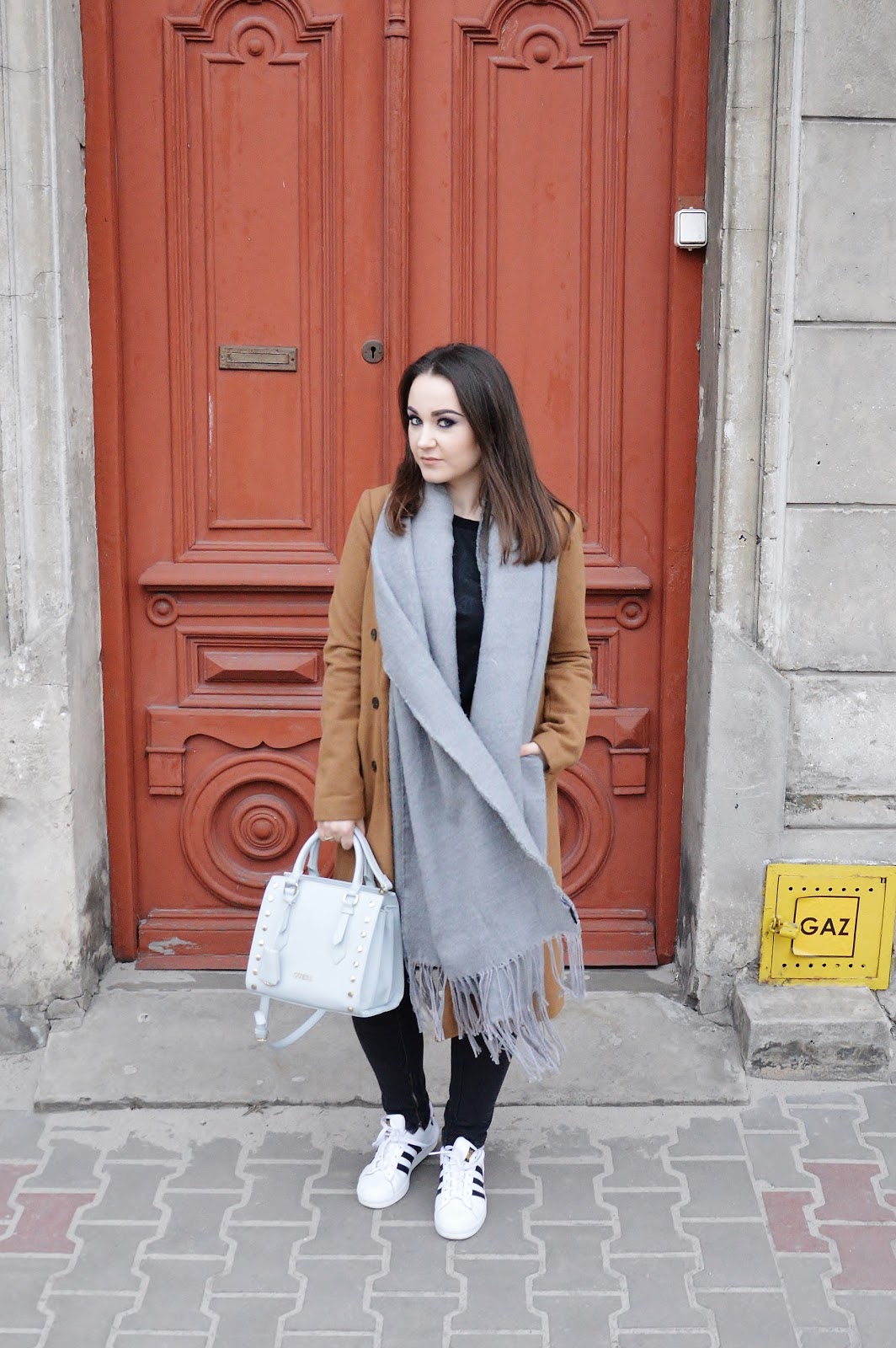 Bag- Guess/Coat- Pull&Bear/Jeans- Zara/Scarf- H&M/Shoes- Adidas Superstars/Blouse- Mohito