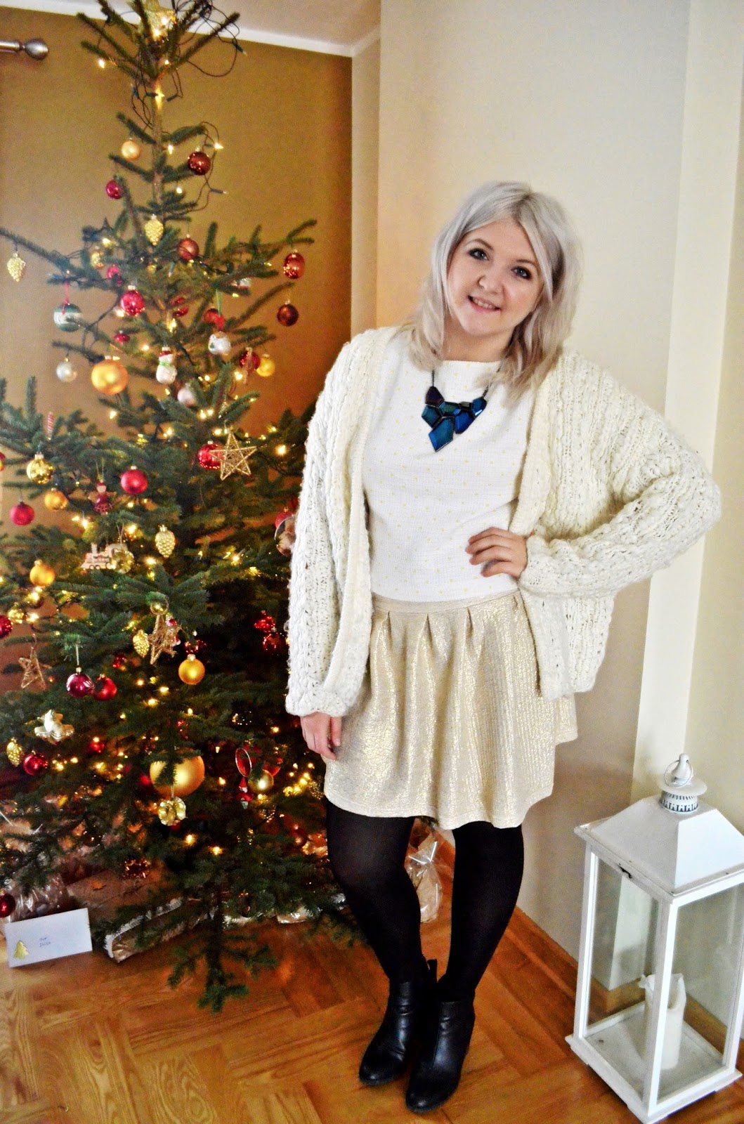Święta to idealny moment, żeby zaszaleć ze złotem. Nawet jeżeli zdarzy się nam przesadzić to i tak można wtedy przymknąć na to oko. Oczywiście lepiej zawsze wyważyć kolory, albo całość przełamać np. casualowym swetrem jak zrobiłam to ja :)