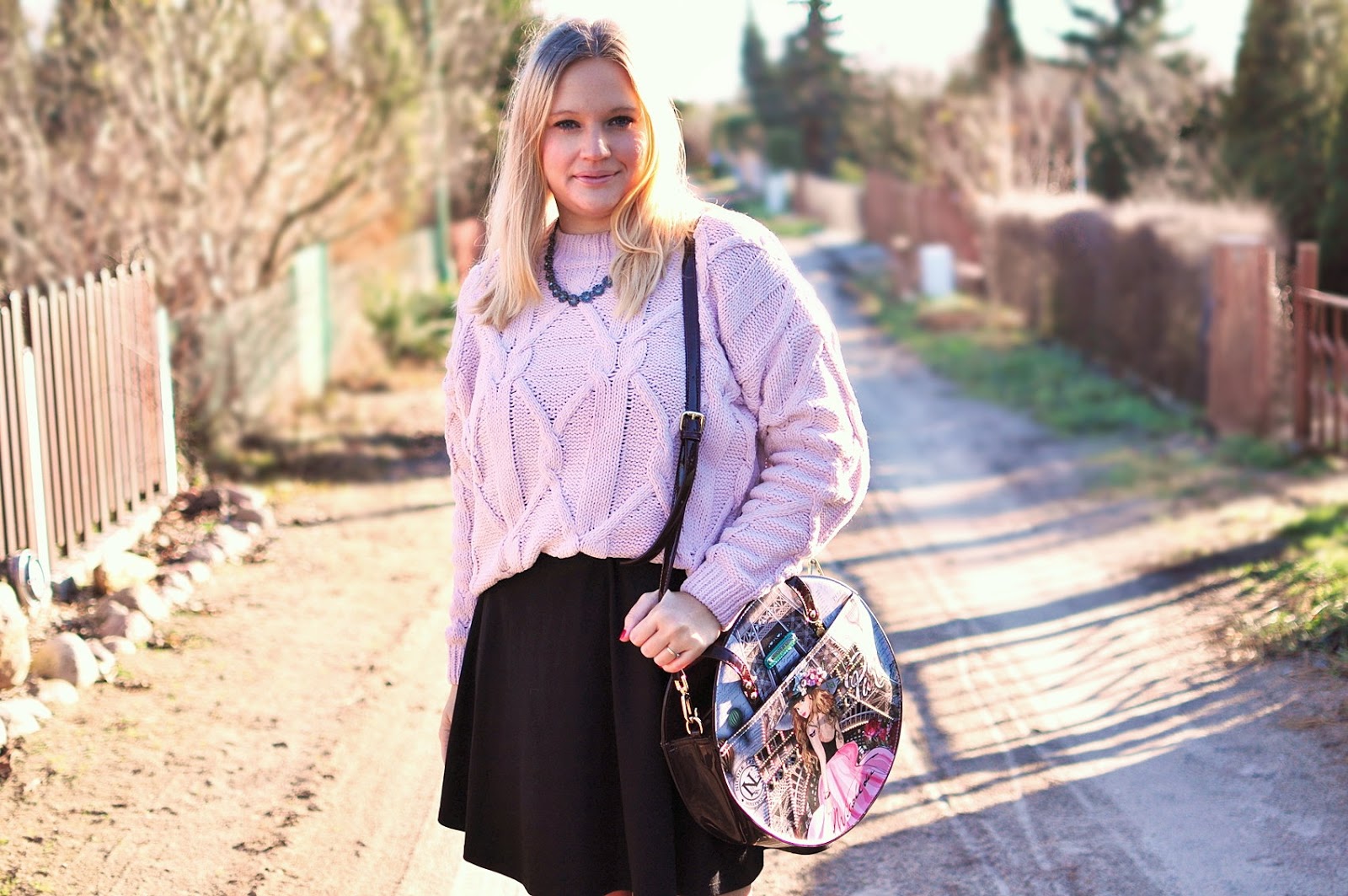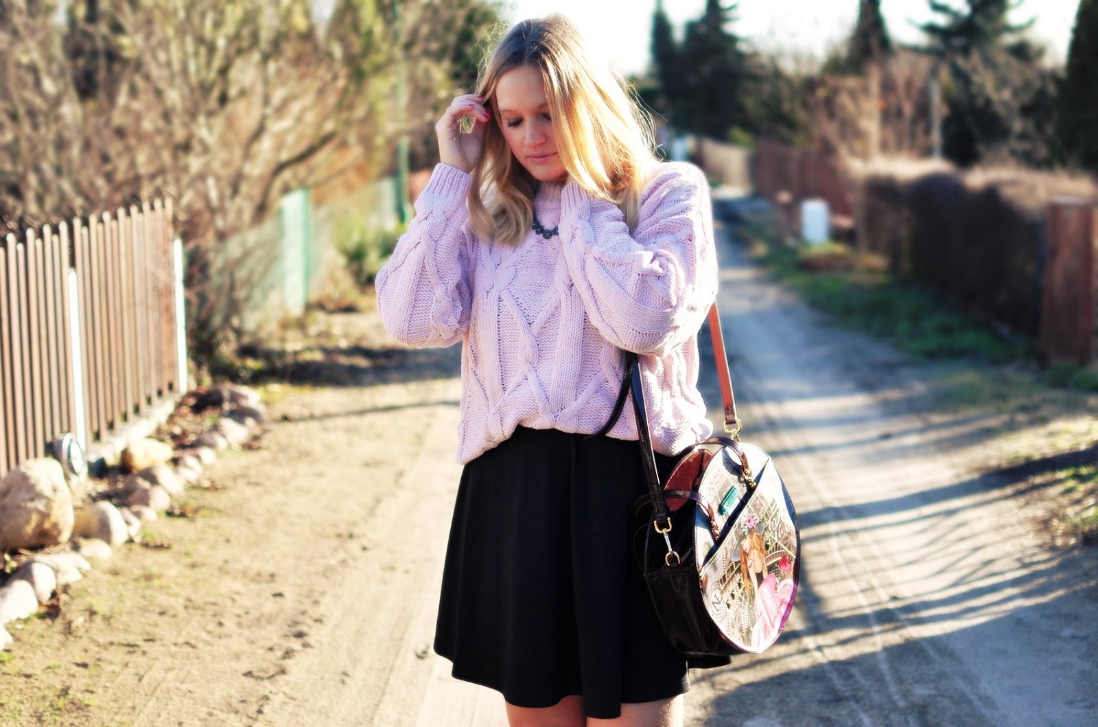 Ja zdecydowałam się połączyć odcienie na torebce z moimi ubraniami, czyli wybrałam czarną sukienkę, skórzane botki i różowy sweter oraz płaszcz. Swoją drogą sweter jest cudowny i miękki w dotyku. To również świetna propozycja na wiosnę. Gdy będzie chłodniej, założę jeszcze do tego czarne rajstopy. Zdjęcia robiłam w dzień, w którym akurat wyszło słonko i było dość ciepło. Niedługo postaram się stworzyć Wam inną stylizację z torebką Nicole Lee, abyście mogli zainspirować się i zobaczyć, jak można ją nosić. Jestem ciekawa czy w swojej szafie macie takie oryginalne torebki?