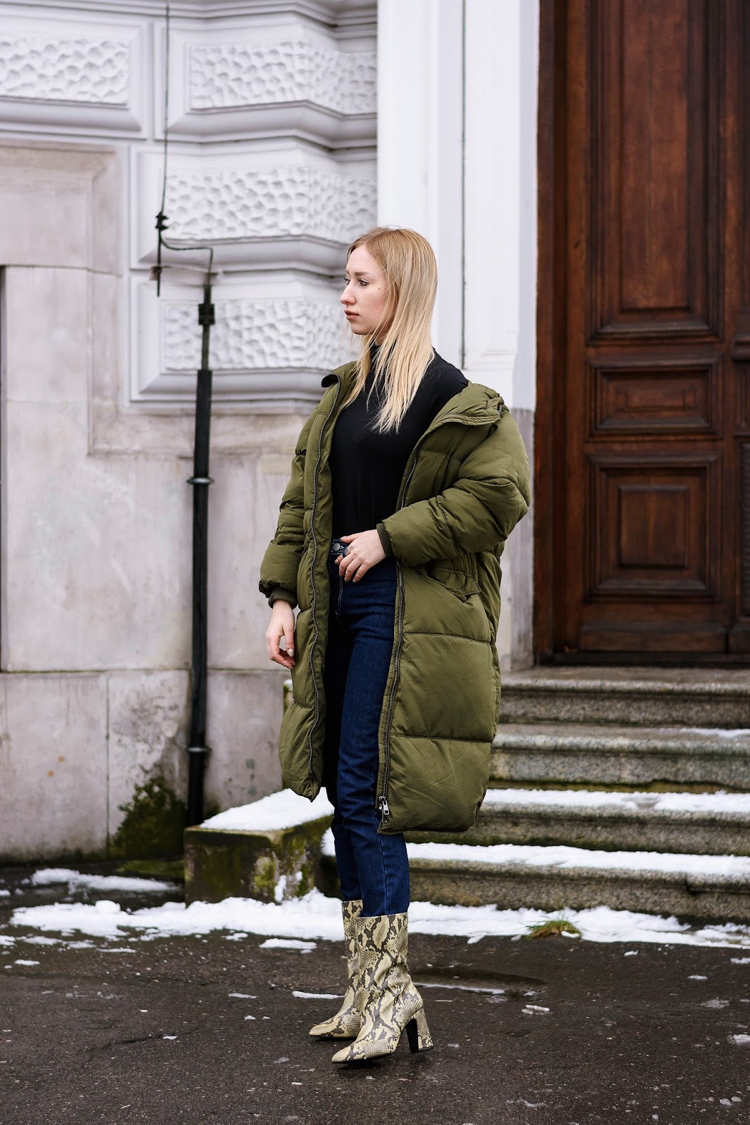 W tym wpisie pojawił się puchowy płaszcz, który upolowałam na wyprzedażach za 90 zł. Wężowe buty, które chodziły za mną od dawna i ostatecznie udało mi się upolować je taniej o ponad 60%! Kolejnym łupem są kolczyki, których ostateczna cena wynosiła 20 zł.