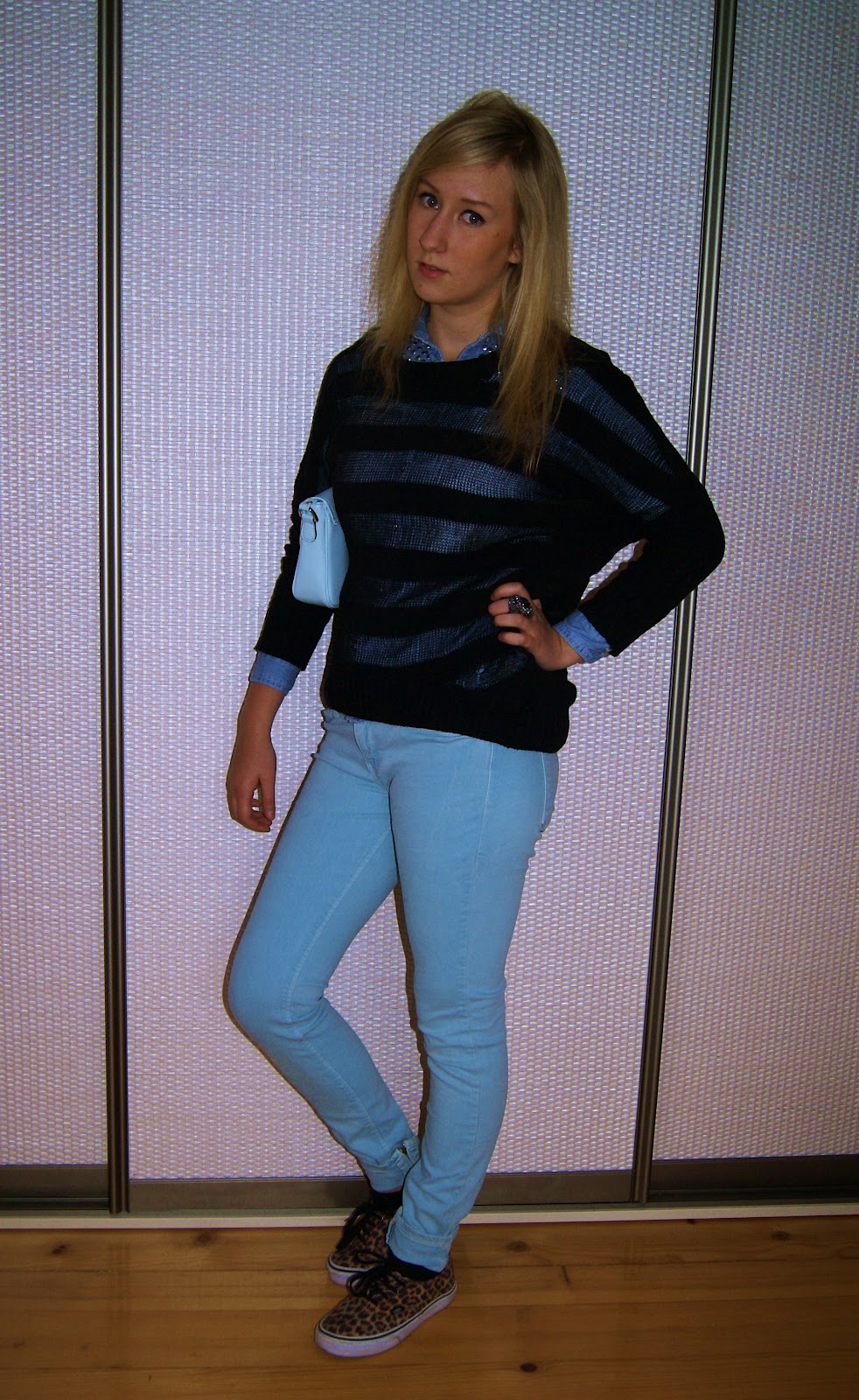 Zobacz oryginał pon., 01/10/2012 - 19:22Cześć! Ostatnio wyjątkowo się rozleniwiłam, kiedyś dom traktowałam jak hotel, a teraz siedziałabym w nim ile tylko się da. Postanowiłam, że od września będę robiła sobie plan dnia, aby na wszystko znaleźć czas i muszę Wam zdradzić, że jak na razie idzie mi dobrze i wszystko staram się mieć poukładane. Remont mojego pokoju przeciąga się w nieskończoność, ale jednak inny wystrój pokoju i pomalowanie ściany wiele zmieniają, bo czuję się w nim o niebo lepiej. Stylizacja bardzo spontaniczna - oparta (jak to u mnie) na wygodzie, vansy połączone z jeansami, jeansową koszulą, sweterkiem oraz moją nową torebką mumu. Obiecuje sobie za każdym razem, że muszę zmienić kolorystykę w szafie na jesienną ,ale chyba nie ma szans. Pozdrawiam was gorąco ; *