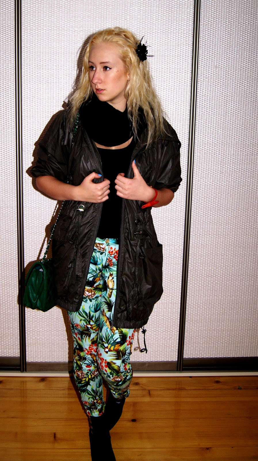 Witajcie. Postanowiłam pisać każdą notkę na jeden konkretny temat, a nie na milion nie od czapy. Ostatnio wpadłam na pomysł pofarbowania sobie włosów. Podobało mi się, jak w lato rozjaśniły mi się od słońca włosy i postanowiłam na taki sam kolor je pofarbować. W końcu wybrałam się po zakup wybranego przeze mnie musu. I co? Oczywiście kupiłam chyba najgorszą farbę, jaka tylko mogła być, ponieważ tak mi zniszczyła włosy, że połowa z nich mi wyleciała. Mam wrażenie, że zamiast włosów mam jedno wielkie siano - jeszcze tylko wideł brak. Przechodzę teraz etap codziennych masek na włosy oraz innych cudów, by ich stan się poprawił. Chyba jednak następnym razem wybiorę się do fryzjera. Stylizacja z moim nowym zakupem: khaki parką, której od dawna szukałam. Miłego weekendu :)
