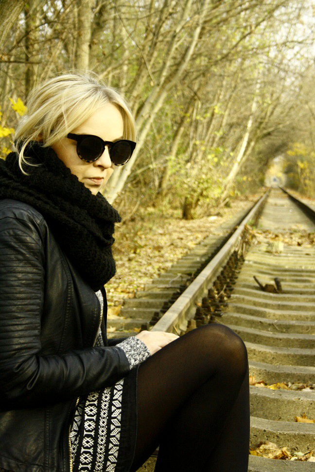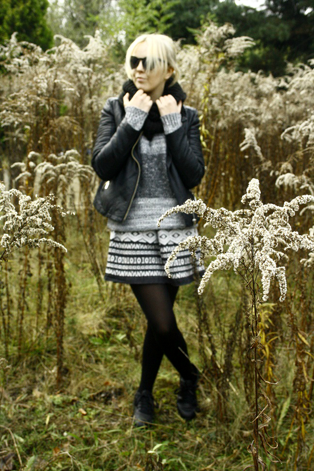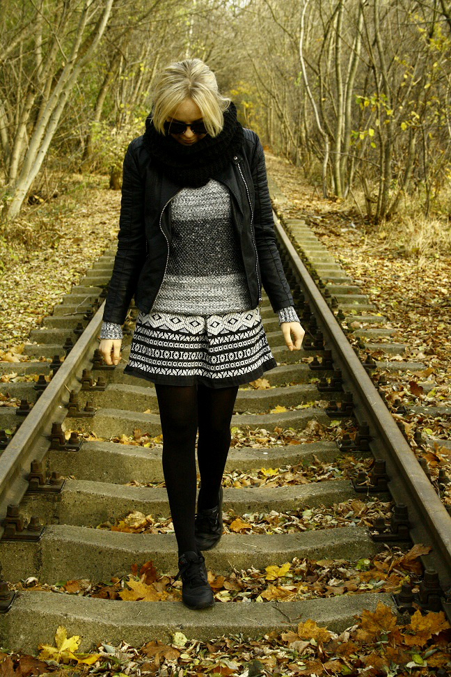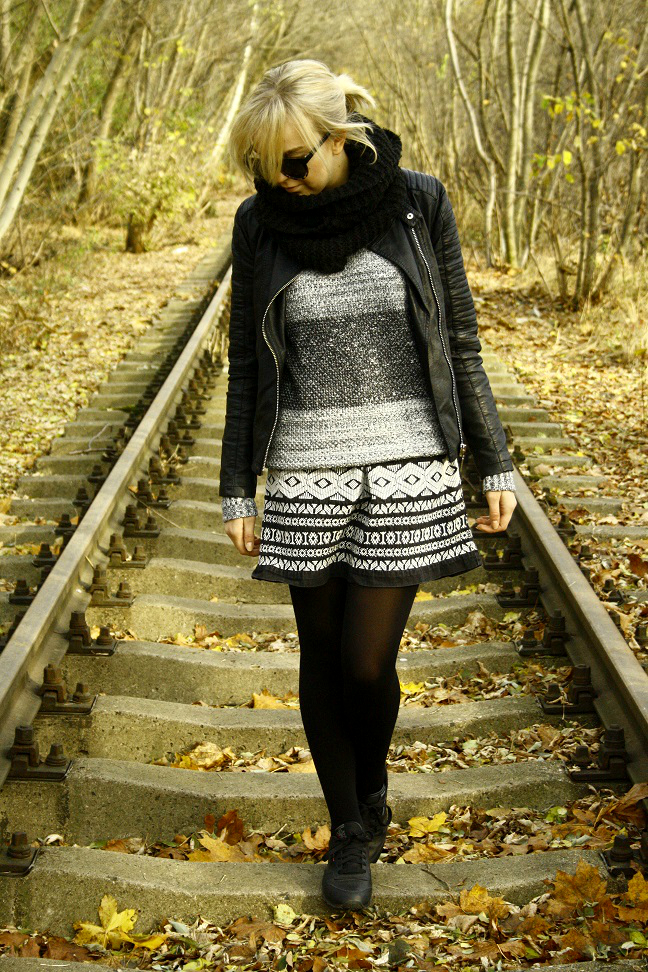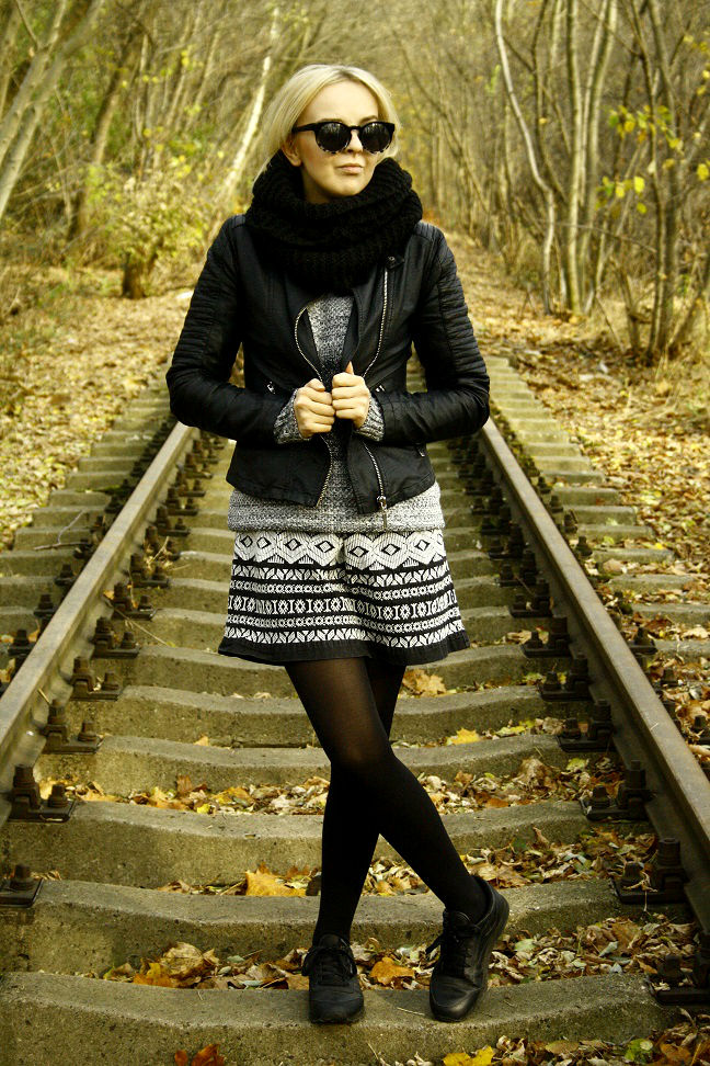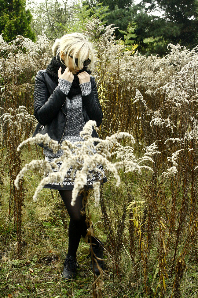 Sweter BOOHOO MAN / Sukienka TOPSHOP / Kurtka EBUTIK.PL / Buty REEBOK