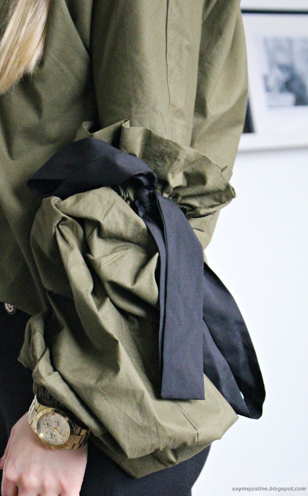 Pogoda ostatnio nie sprzyja "sesjom" na zewnatrz, dlatego dzisiaj mam dla was post z moich czterech scian :) To, ze szerokie rekawy to jeden z moich ulubionych trendow tego sezonu to zadna tajemnica, w tym wpisie mam dla was kolejne cudenko, ktore niedawno zagoscilo w mojej szafie - oliwkowa bluzka z czarnymi akcentami. Jak wam sie podoba?