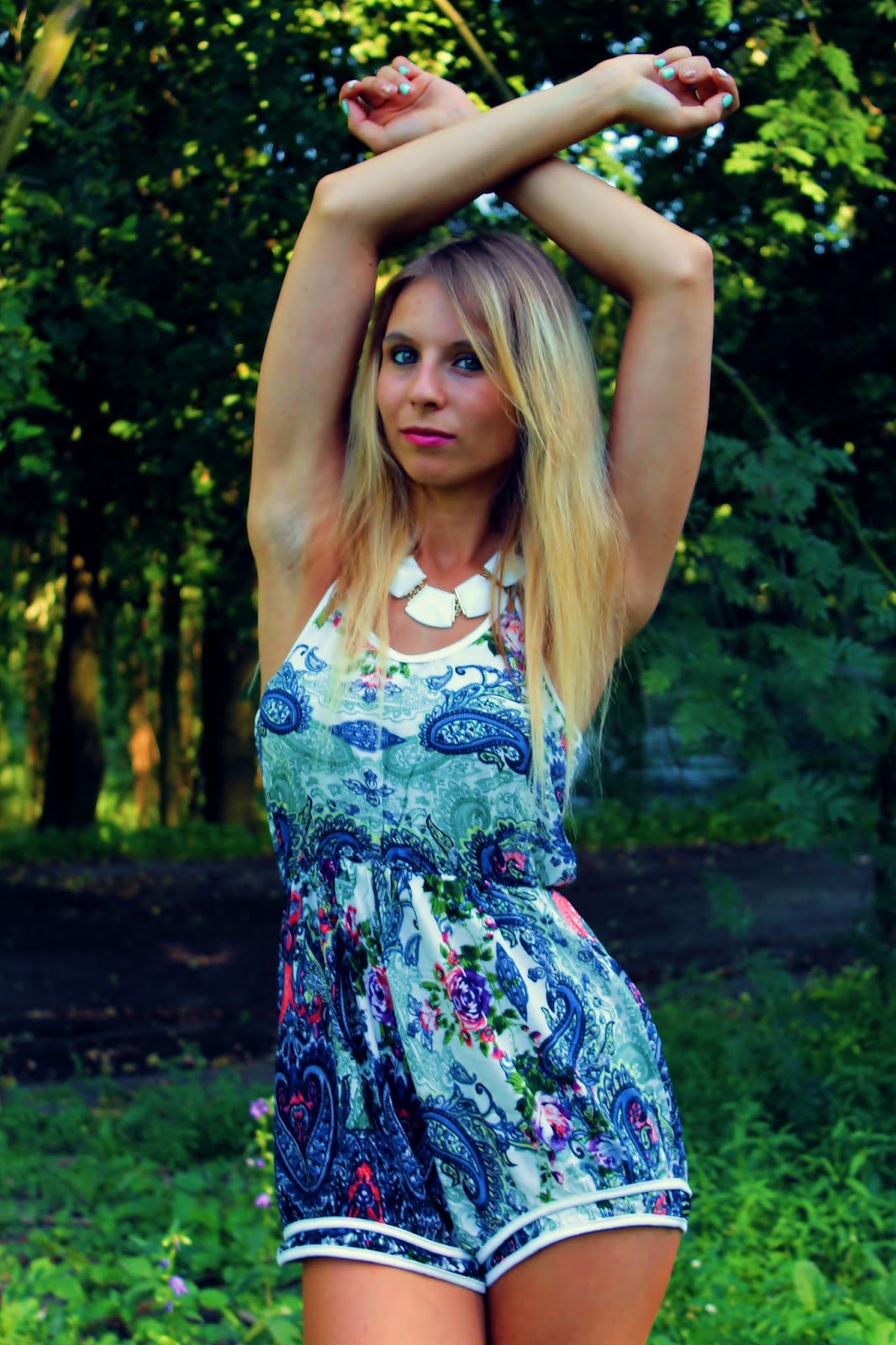 Zobacz oryginał wt., 14/07/2015 - 18:08Kombinezony świecą triumfy już od kilku sezonów, a w sezonie wiosna/lato 2015stanowią najmodniejszy element garderoby. Świetnie modelują sylwetkę i wyglądają stylowo. Dostępne w różnych fasonach, krojach, wzorach i kolorach, dzięki czemu każda znajdzie coś dla siebie, tworząc wyjątkową stylizację. Popularnością cieszą się kombinezony w kwiaty,wzory azteckie. Dla osób, które lubią klasykę, sieciówki oferują gładkie w różnych odcieniach od stonowanych kolorów: bieli, czerni, szarości po mocne i wyraziste neony. Ten element nada się na wiele okazji. W zestawieniu z trampkami lub sandałami będzie idealny na co dzień. Z kopertówką i szpilkami stworzy zestawienie na wieczorne wyjście. Natomiast wykonany z eleganckiego materiału w połączeniu z żakietem sprawdzi się do pracy. Wszystko zależy od fasonu, na który się zdecydujemy. Ja zdecydowałam się na kombinezon z motywem kwiatowym, dostępny tu, który bardzo lubię. Zestawiłam go z trampkami. Dodatek stanowią białe bransoletki, naszyjnik oraz torebka. Jak Wam się podoba?