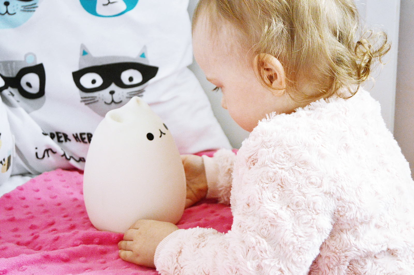 Zobacz oryginał pt., 03/03/2017 - 16:01Cześć kochani! Co u Was? Mam nadzieję, że zaczęliście nowy miesiąc pełni humoru i energii tak jak my. Dawno nie wstawiałam na bloga aktualnych zdjęć mojej córeczki. Dzisiaj zobaczycie ją razem z naszym kocim ulubieńcem. Nocną Lampkę zamówiłyśmy ze strony Gamiss. Czekałyśmy na przesyłkę około 2 tygodni. Oliwka jakiś czas temu zasypiała tylko przy włączonym świetle dlatego szukałam dla niej jakiegoś fajnego i praktycznego rozwiązania, którym okazał się bardzo wielofunkcyjny kotek. Lampka jest nieduża, za to daje na prawdę dość dużo światła. Posiada dwa tryby. Pierwszy z nich to stałe ciepłe światło, ale jeśli chcemy uruchomić drugi wystarczy lekko puknąć w lampkę dłonią i kotek zaczyna zmieniać kolory. Trzecie puknięcie całkowicie go wyłączy. Lampkę można ładować tak samo jak telefon więc jest to ogromne ułatwienie. Dodatkowo naszego święcącego kota możemy zabrać ze sobą dosłownie wszędzie i bezproblemowo przenosić go z pomieszczenia do pomieszczenia. Wybierałam lampkę z myślą o pokoju dziecięcym ale myślę, że doskonale sprawdzi się również jako dodatek w salonie czy pokoju nastolatki. Jak Wam się podoba? My jesteśmy zachwycone i mega zadowolone.