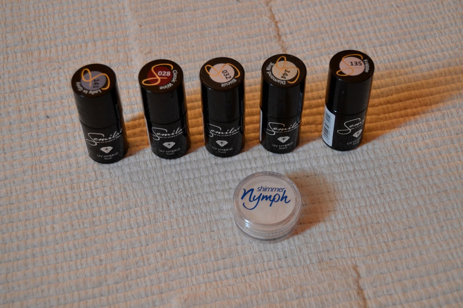 Moja przygoda z lakierami hybrydowymi dopiero się rozpoczęła, ale już na wstępie byłam ciekawa jakości lakierów od firmy Semilac. Stąd dzisiejszy post i porównanie! Zacznijmy może od wrażeń po zdejmowaniu lakierów hybrydowych Neess. Byłam mile zaskoczona, gdyż zajęło mi to ok. 10 min, po wcześniejszym spiłowaniu płytki paznokcia z lakierem, namoczeniu wacika w Removerze, owinięciu paznokcia z wacikiem folią aluminiową lakier sam "schodził".  Drobne pozostałości usunęłam patyczkiem. Pod lupę wzięłam kolor 135 Frappe Semilac oraz pyłek "efekt syrenki".Lakiery od Semilac gęstsze, lepiej napigmentowane, ponieważ wystarczą dwie warstwy, aby uzyskać pożądany kolor. Buteleczka od Semilac zawiera 7 ml lakieru, natomiast od Neess 8 ml, a do tego fajne nazwy - "czerwony i wściekły" czy "karmelowa tęsknota", oba kosztują ok. 29 zł. Utwardzałam je również w lamie LED 9W dwa razy przez 90s. Nałożenie pyłku zajęło mi trochę czasu, gdyż robiłam to pierwszy raz. Po aplikacji wszystkich warstw lakieru hybrydowego nałożyłam top, który utwardziłam w lamie LED. Następnie na warstwę dyspersyjną nałożyłam dużą ilość pyłku, który "wklepałam" palcem. Natomiast nadmiar usunęłam za pomocą miękkiego pędzelka, opcjonalnie można użyć szczoteczki do paznokci. Utwardziłam w lampie, a na końcu nałożyłam dwie warstwy topu, aby całość utrwalić. Podsumowując moje doświadczenia z powyższymi lakierami Semilac ma u mnie duży plus za trwałośćpigmentację i gęstość. Jeszcze nie miałam okazji ich usuwać, więc o wrażeniach nie opowiem. Natomiast Neess duży plus za szybkie zdejmowanie lakieru, trwałość, jednak nakładanie wielu warstw, aby uzyskać kolor trochę zniechęca i pochłania więcej czasu.