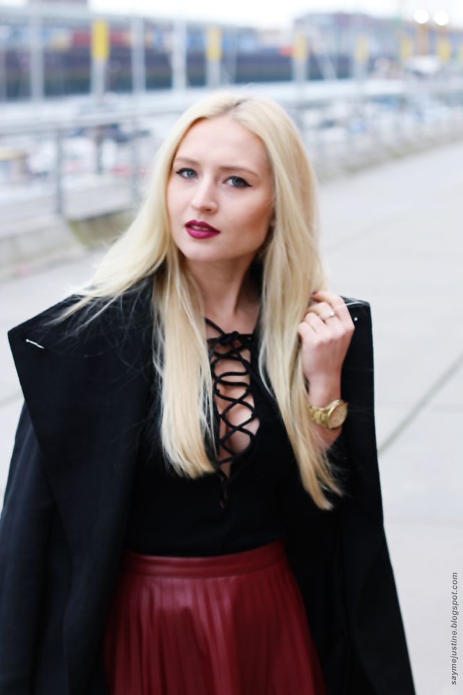 Wiazane buty juz byly, teraz czas przyszedl na bluzki, topy, swetry i sukienki! Jedne maja wiekszy dekolt, inne mniejszy, moja bluzka ma dosc spory dekolt, ale jesli odpowiednio ja zestawimy mozemy spokojnie nosic ja na co dzien. Ja dobralam do niej spodnice midi, kozaki za kolano i elegancka czarna torebke, w takim wydaniu nie wyglada wulgarnie. Jak wam sie podoba ten trend?