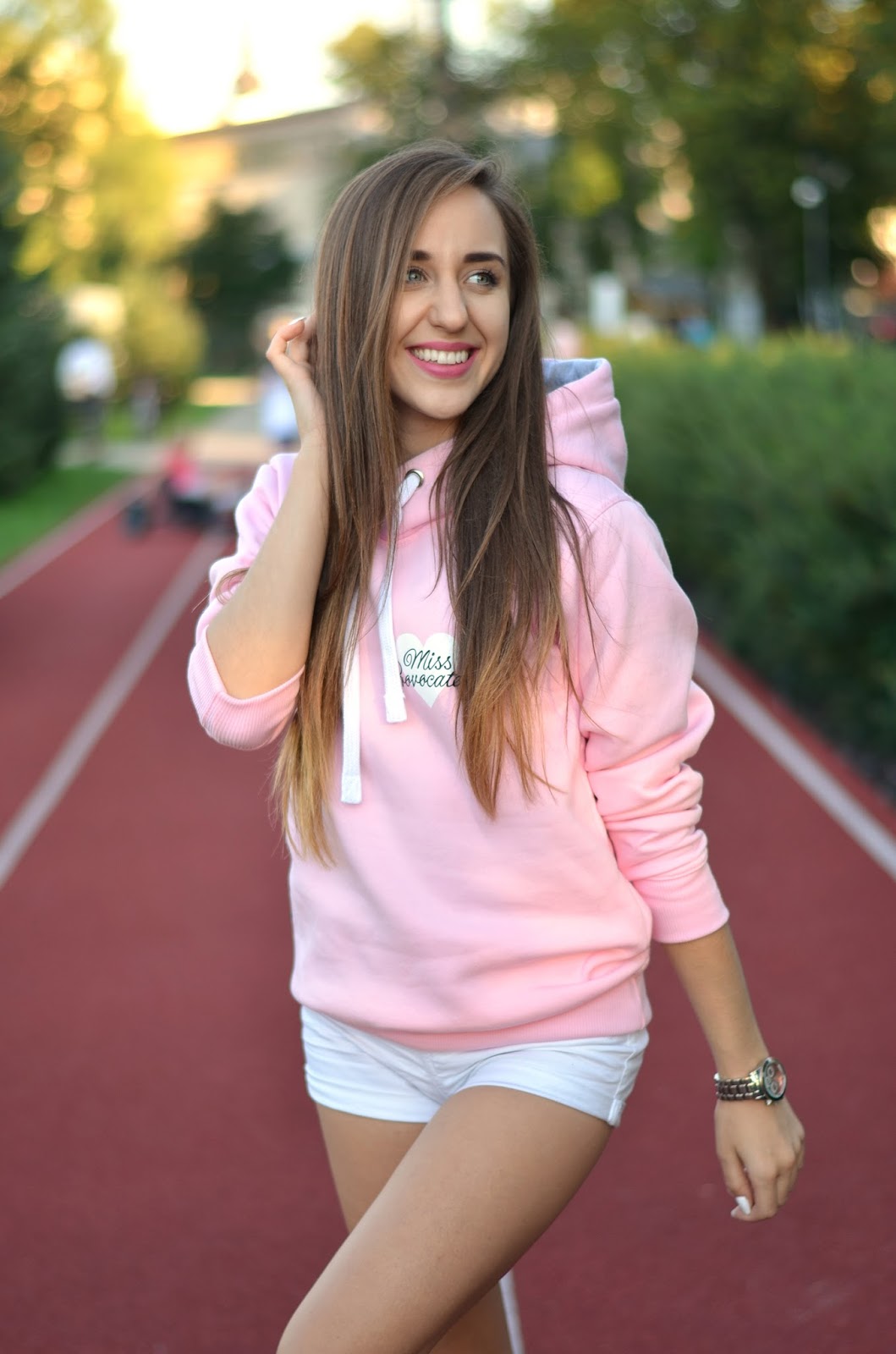 Witajcie:) Jestem już po Targach Mody. Niedługo szykuję obszerniejszą relację z całego wydarzenia, ale już teraz mogę Wam napisać, że wyszło świetnie w najlepszym towarzystwie;) Dzisiaj zestaw w nieco innym wydaniu dziewczęco - sportowym. Dawno czegoś w tym klimacie na blogu nie było. Pudrowy róż jest jednym z moich ulubionych kolorów właściwie od zawsze, o czym już kilkukrotnie wspominałam. A bluza ma moim zdaniem idealny odcień oraz fason. Znajdziecie ją w sklepie Avocado, a przyznam, że jest w nim sporo świetnych rzeczy - nie tylko sportowych. Sprawdźcie sami!:)