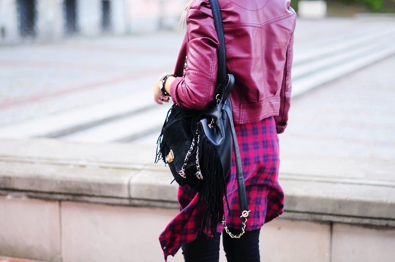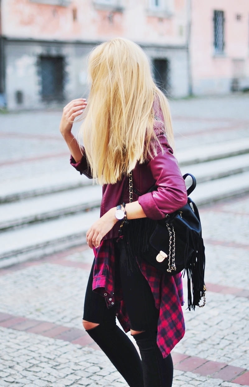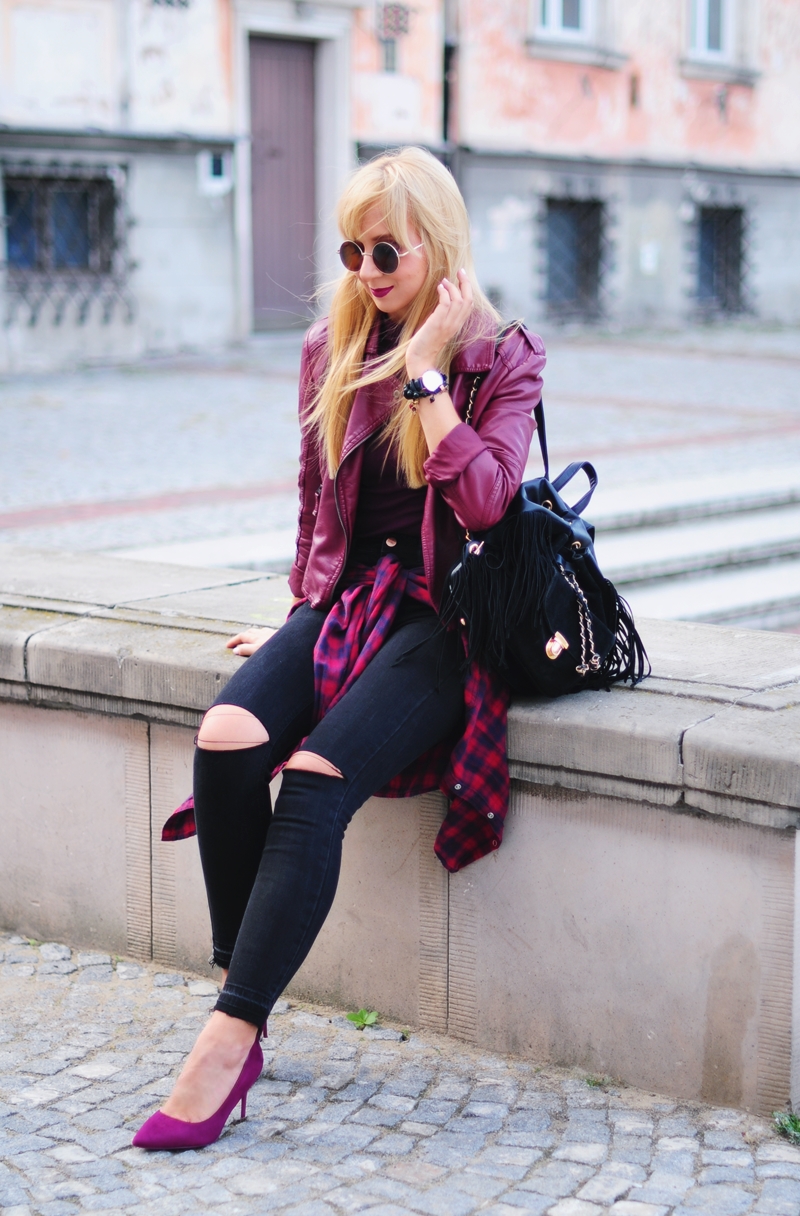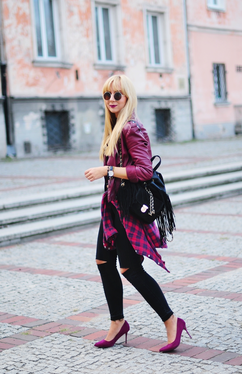 Zobacz oryginał czw., 22/09/2016 - 18:03Nawiązując do trendów na obecny sezon jesień/zima 2016 jestem dziś w odcieniach fioletu. Ciężko mi określić czy to burgund czy bardziej amarant, niemniej jednak połączenie tych różnych odcieni z czernią idealnie wkomponowuje się w klimat starych kamieniczek przy Starym Mieście w Warszawie. Fajną alternatywą dla czerwonej bądź zielonej w koszuli w kratę jest właśnie ta w kolorze śliwki, najlepiej przewiązana na biodrach. Pod kurtką mam na sobie świetne body z h&m, jakże szkoda że było za zimno żeby je pokazać. Jak Wam się podoba? :)