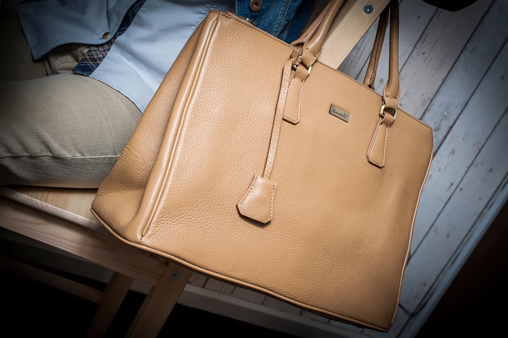 Stylizacja była tworzona z myślą o miejscu, gdzie były wykonane zdjęcia. Jeansowa kurtka, koszula, spodnie w jasnym kolorze oraz dodatki w postaci beżowej torby i czółenek tworzą zgraną całość.