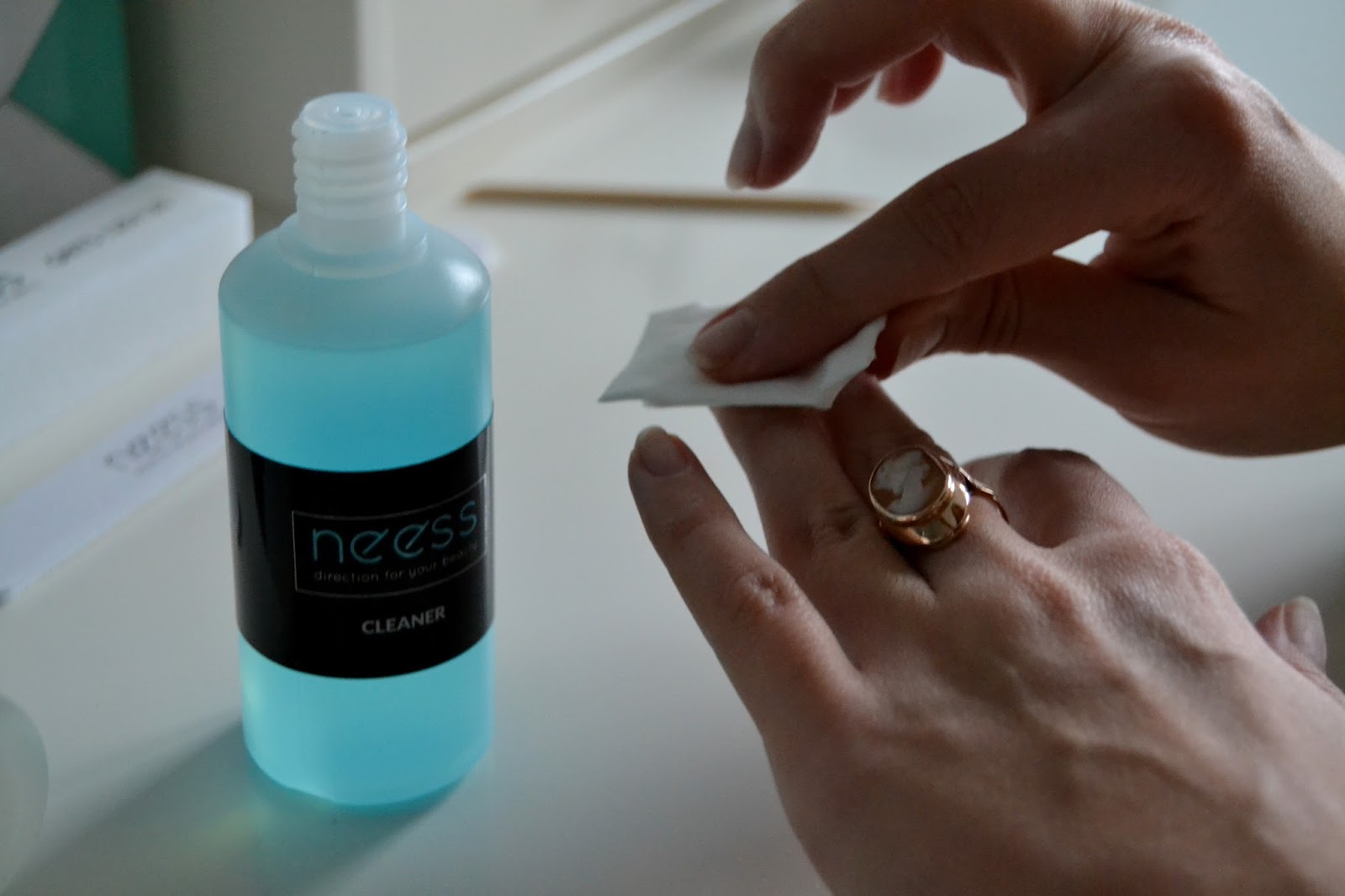 4. Za pomocą wacika nasączonego cleanerem przemyłam paznokcie.