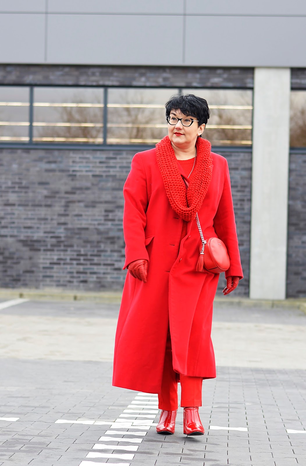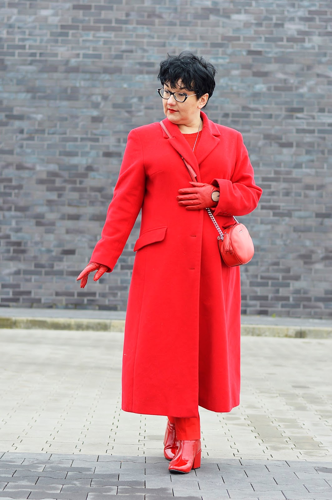 Chodził za mną już od kilku miesięcy, ale ciągle to nie było to. Niby miałam już każdą część garderoby w tym ognistym kolorze, ale całość nie była zadowalająca. Czerwonych rzeczy mam w szafie śladowe ilości i nie mogłam wymieniać ich do woli. Chciałam już nawet kupić coś tylko na potrzeby posta, ale nie znalazłam nic ciekawego. Jak to zwykle bywa; gdy tylko odpuściłam, tzn. przestałam szukać " na siłę " znalazłam go! To był ten element, który połączył to, co już miałam w swojej szafie. Ma piękny zimny odcień czerwonego, jest świetnej jakości i znalazłam go w second handzie za grosze. Czerwony płaszcz.