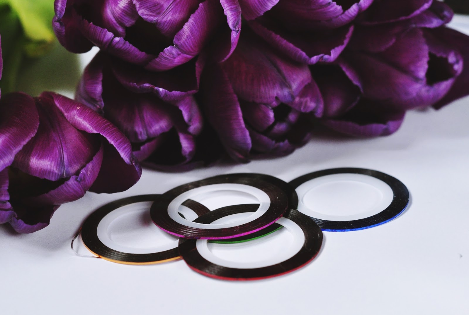 Zacznijmy od rzeczy, które w moje posiadanie weszły najwcześniej. Te cieniutkie kolorowe tasiemki wybrałam sobie podczas mojej współpracy z Dresslink'iem, kiedyś pokazywałam Wam zdobienia wykonane z ich zastosowaniem (o tutaj - KLIK). Zwykle używane są na dwa sposoby - jako naklejki na paznokcie, bądź do uzyskania równej granicy pomiędzy dwoma kolorami lakieru (wtedy zostają zdarte).