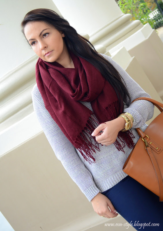 Zobacz oryginał pon., 05/11/2012 - 08:52Znów sweter. Musicie mi wybaczyć, ale to moja ulubiona część garderoby o tej porze roku... Tym razem w połączeniu z granatowymi rurkami, oraz znanym już burgundowym szalem. Na jesienne długie spacery zawsze wybieram płaskie, klasyczne oficerki. Genialnie sprawdzają się chłodną porą, gdy pogoda płata figle.