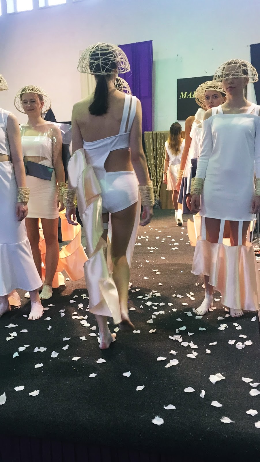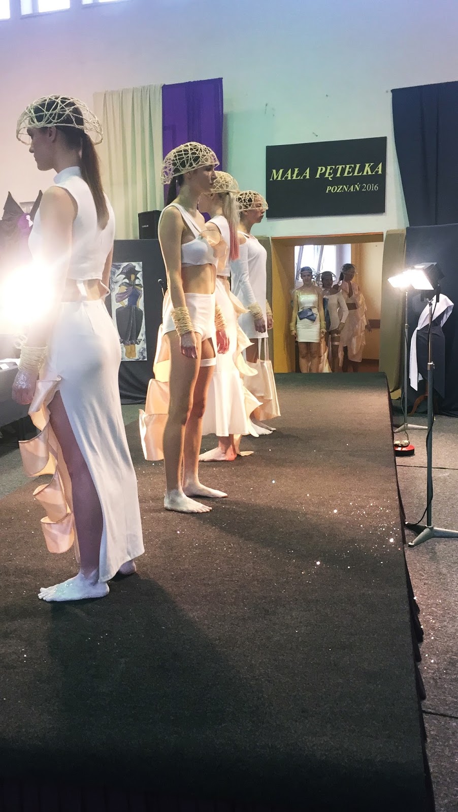Powiem Wam, że podczas tego całego czasu miałam nie jedno załamanie i wątpiłam w swoje siły. W momencie kiedy otrzymałam wyróżnienie na początku nie byłam zadowolona czułam się niedoceniona, jednak po tym czasie uważam, że fakt dostania jakiej kolwiek nagrody jest czymś dużym. Zdobyłam doświadczenie, które dostrzegam teraz i widzę, że wiele zyskałam. To jaki zrobiłam postęp przez rok od poprzedniego konkursu jest fenomenalny, miałam dwa rady mniej czasu i 7 razy więcej roboty. I choć może się Wam wydawać, że taki konkurs to tylko uszycie kreacji to jesteście w błędzie. Do każdego pokazu dochodzi zawsze cała otoczka. Muzyka - którą trzeba zmontować, skleić (za co dziękuję paru osobom) Fryzury, makijaż, dodatki... Dziewczyny miały malowane stopy na biało i były posypywane brokatem, nie udało by mi się wszystkiego zrobić samej gdyby nie pomoc moich znajomych gdy mieliśmy tylko parę minut między pokazami. Tak samo confetti i wiele innych małych szczegółów, jak chociażby modelki, które świetnie sobie poradziły, bez których całość nie wyglądałaby tak jak to było w efekcie końcowym. I powiem to choć się powtórzę - Jestem z siebie dumna. :)