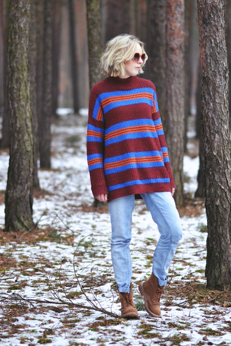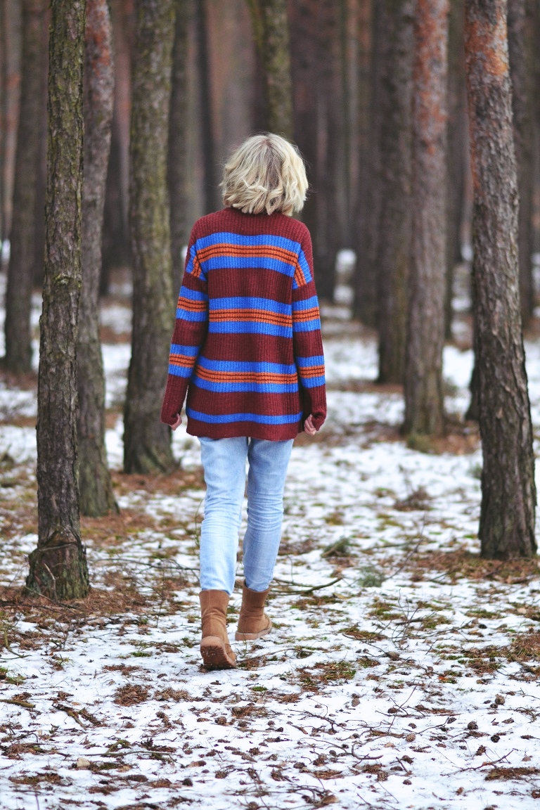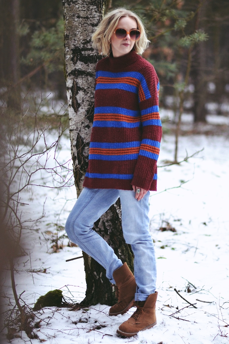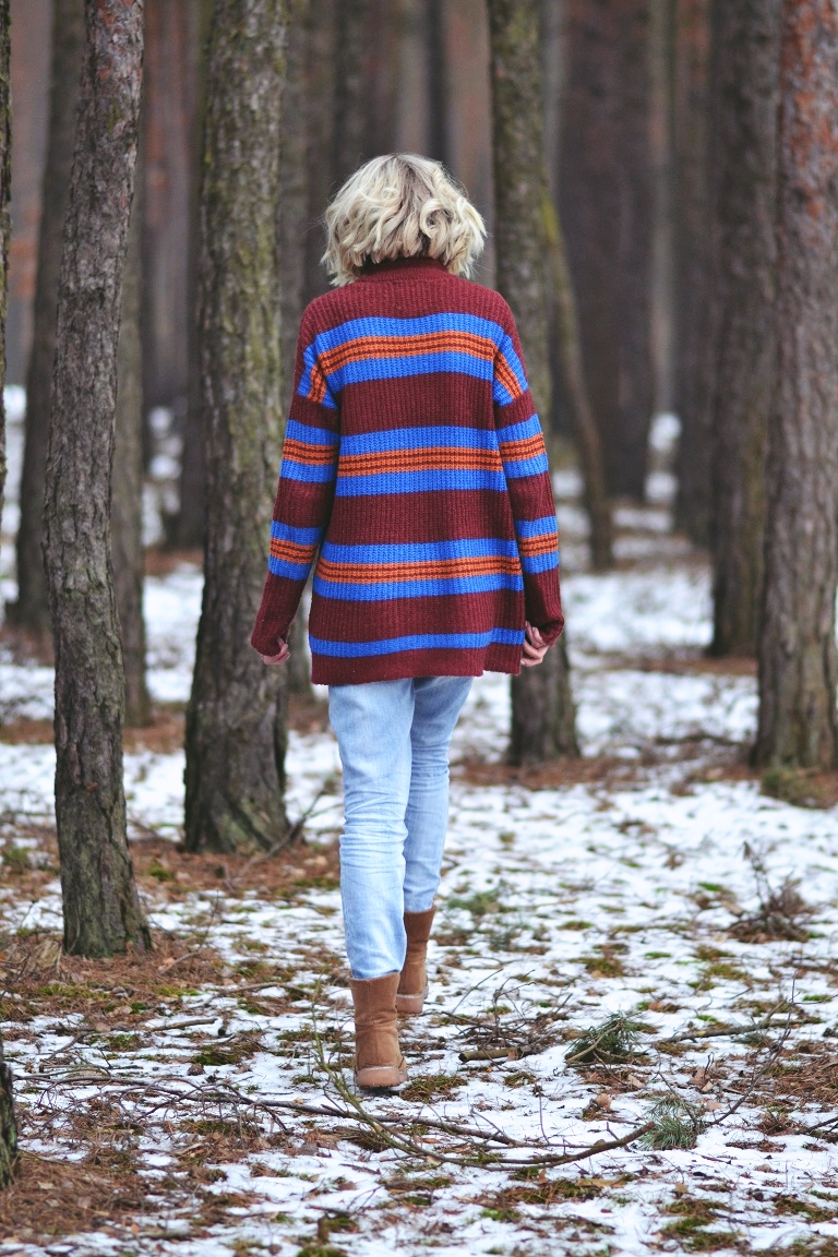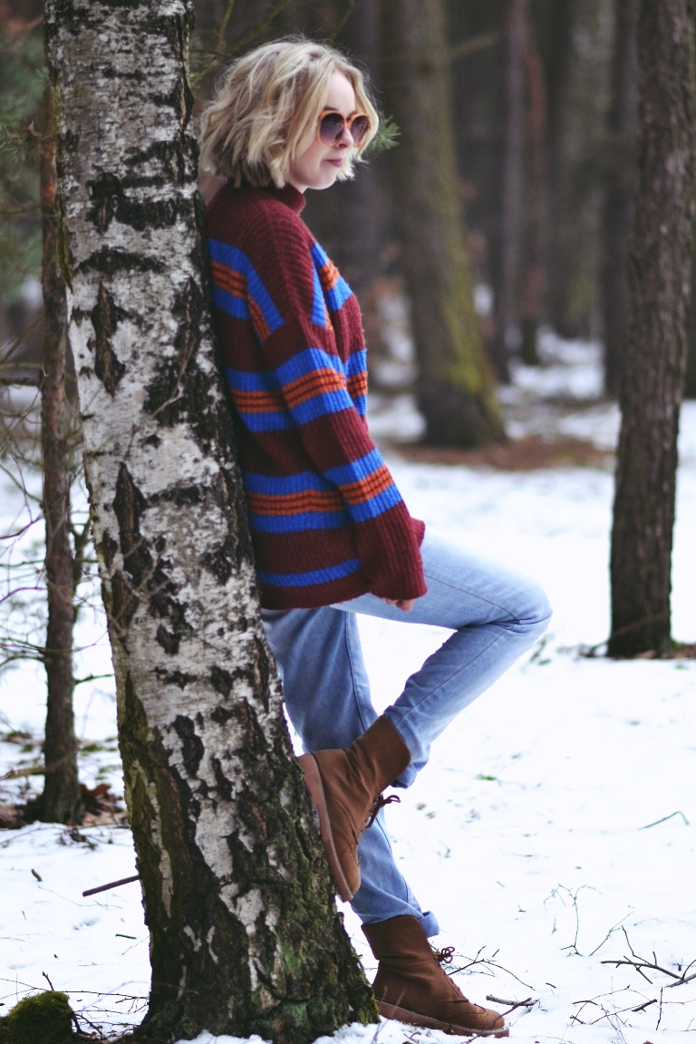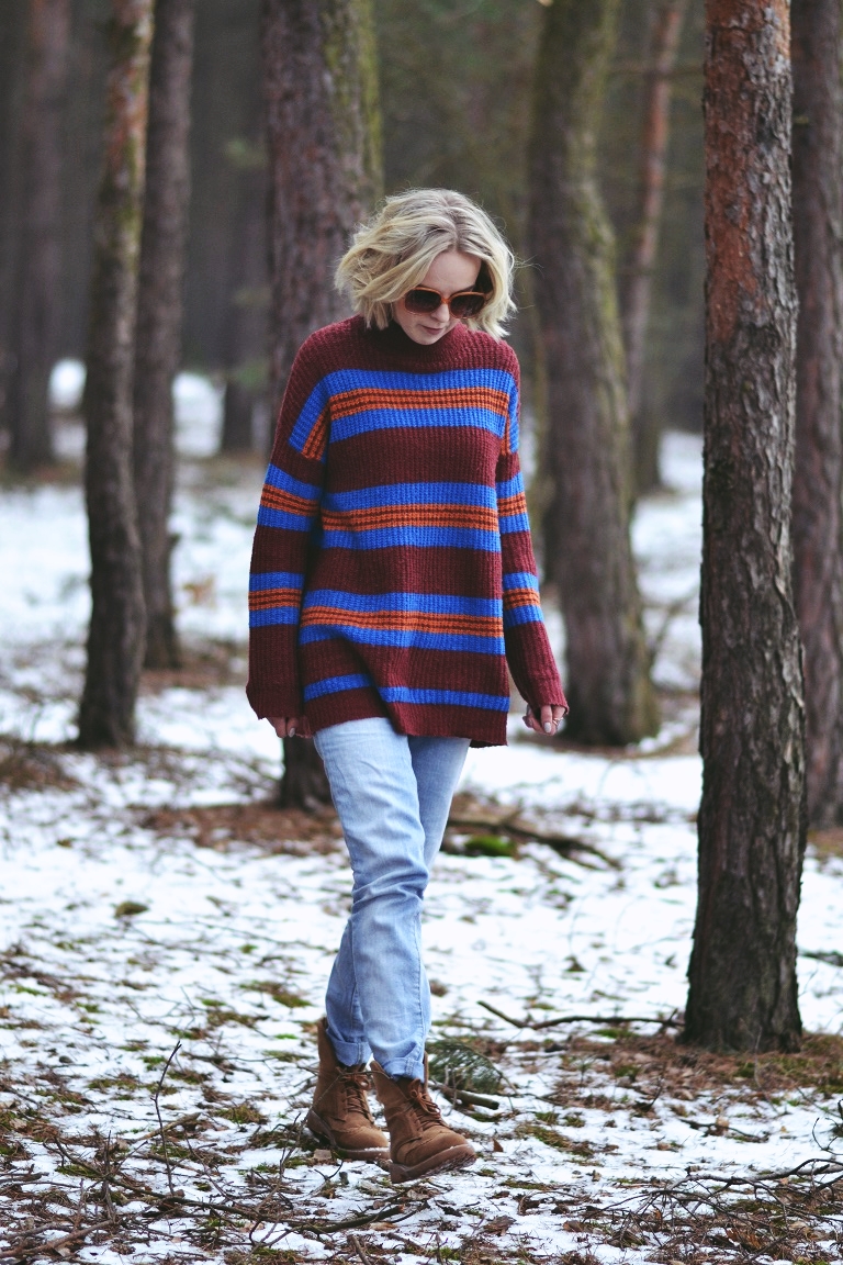 Zobacz oryginał pt., 03/02/2017 - 18:21Zawsze przeglądając Lookbook najbardziej urzeka mnie styl, w którym czuć chłód. Nie potrafię dokładnie tego określić. Może tak... blada skóra, stroje w stonowanych kolorach, grube swetry, płaszcze i brak słońca nad głową. Surowość. I tajemniczość. O tak! Tu chyba najbardziej o tę tajemniczość chodzi. Nie lubię tego, co oczywiste, pospolite i trendy. Dlatego chciałam dziś zdjęcia w lesie. I dlatego praktycznie się do nich nie przygotowałam. Założyłam to, w czym chodzę cały czas. W tym swetrze czytam książkę w łóżku, w nim wychodzę do sklepu po papierosy i sprzątam. To ostatnie zdarza się rzadko. Spodnie leżą w szafie, bo w sumie żal wyrzucić. Są całe, nie mają plam, więc niech leżą. W dni, w których nie mam ambitnych planów, wyciągam je z szafy. I stwierdzam, że są w sumie ok. Ta "stylizacja" to moja codzienność. Taką znają mnie sąsiedzi. I znajomi, przed którymi nie muszę udawać, że modowe triki mam w małym palcu. Bo nie mam. I pewnie mieć nie będę, bo przede wszystkim moda jest do tego, żeby czuć się sobą.