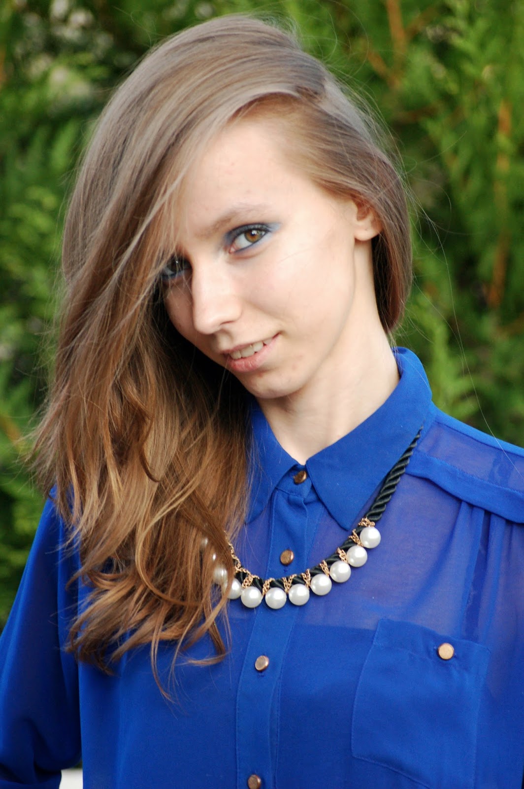 Zobacz oryginał pt., 20/09/2013 - 16:56 Deszcz i zimno to coś czego najbardziej nie lubię. Niestety dzisiaj cały dzień pochmurny i deszczowy.Ale na poprawę chumoru dodaje zdjęcie z wczoraj kiedy aura była bardziej sprzyjająca.W końcu udało mi się namówić Ole żeby zrobiła mi kilka zdjęć :) Efekty widać poniżej.W takim stroju pojawiłam się w Poznaniu podczas spotkania blogerek,o którym więcej już wkrótce. Chabrową koszulę zestawiłam ze spodniami w kolorze zgniłej zieleni. Do tego najwygodniejsze szpilki pod słońcem ( mimo że były kupione o rozmiar za małe ) i mój ulubiony naszyjnik z grubym sznurkiem i perłami.