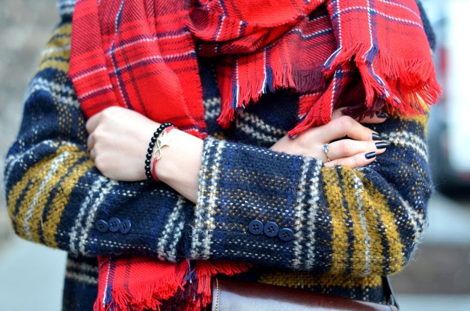 sukienka -Zara / płaszcz -Choies / szalik -H&M / botki -But4U / torebka -Tomskór / kapelusz -Glitter / bransoletki -Mollie & ArteoBijou