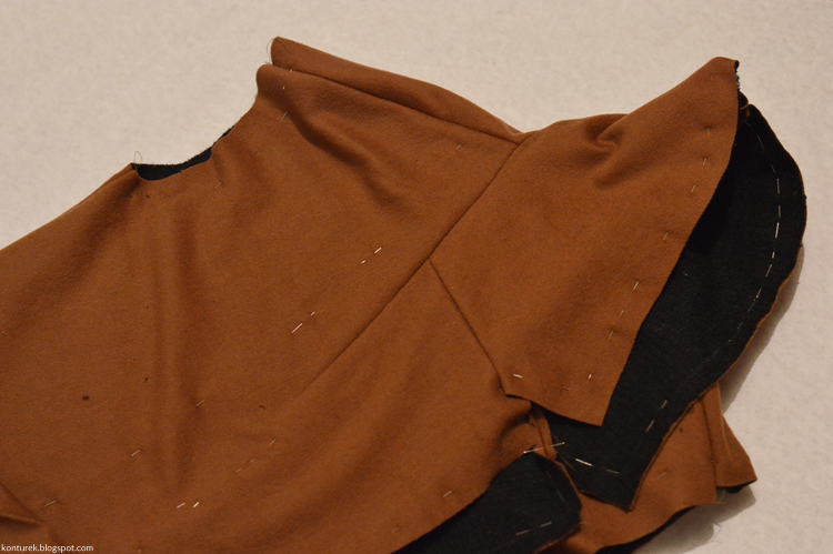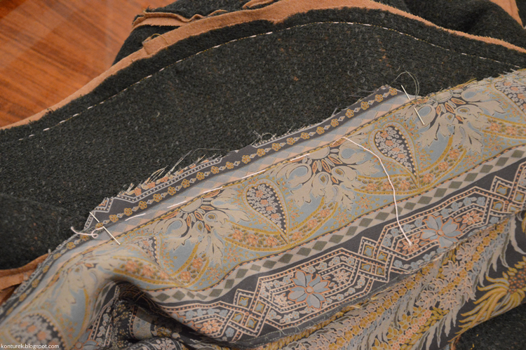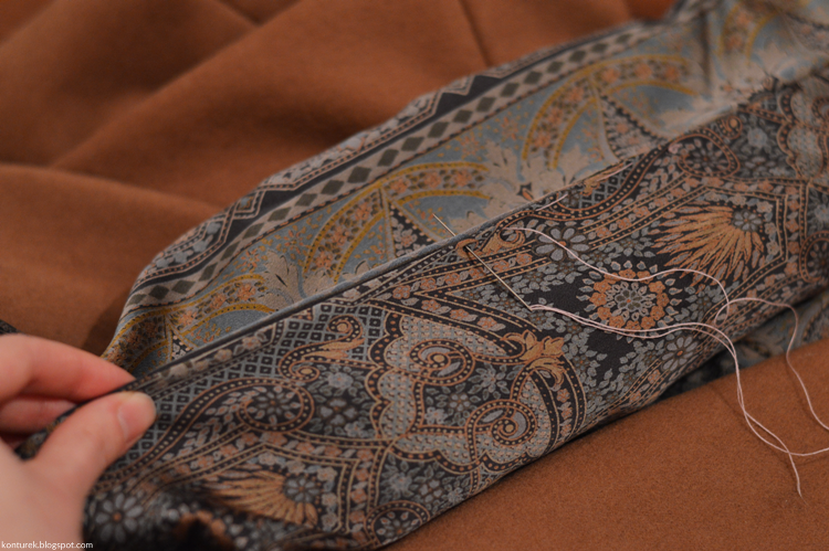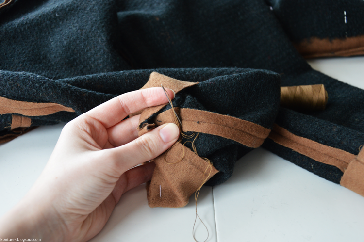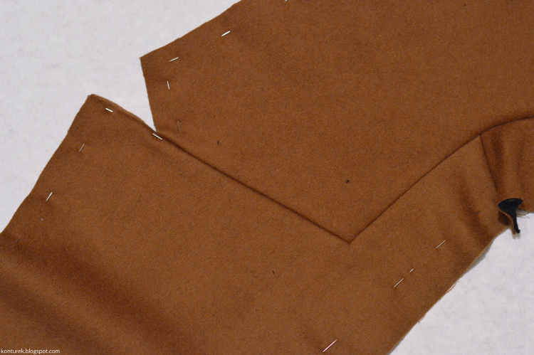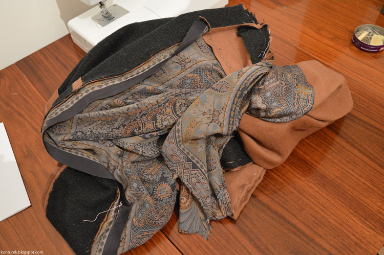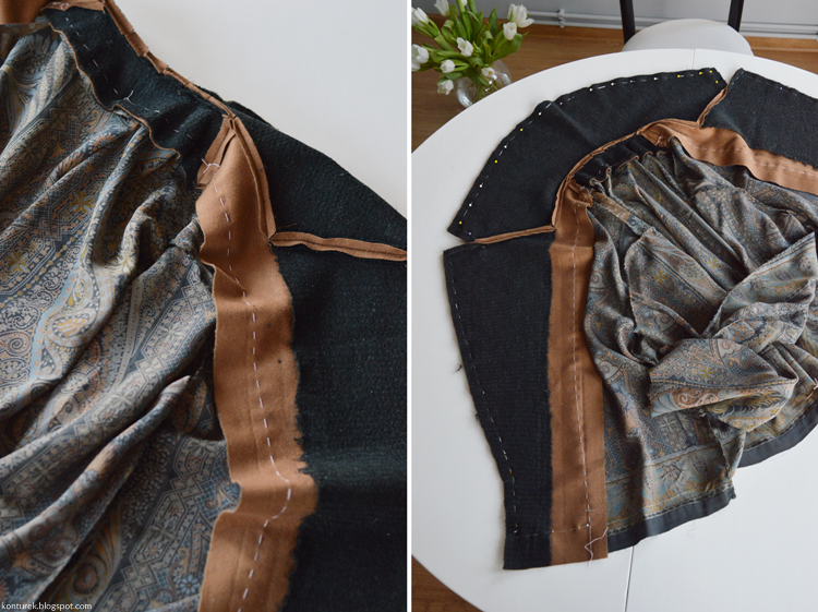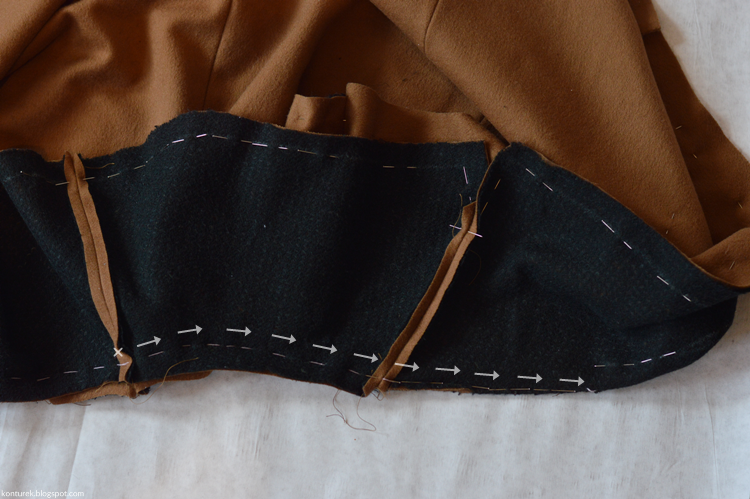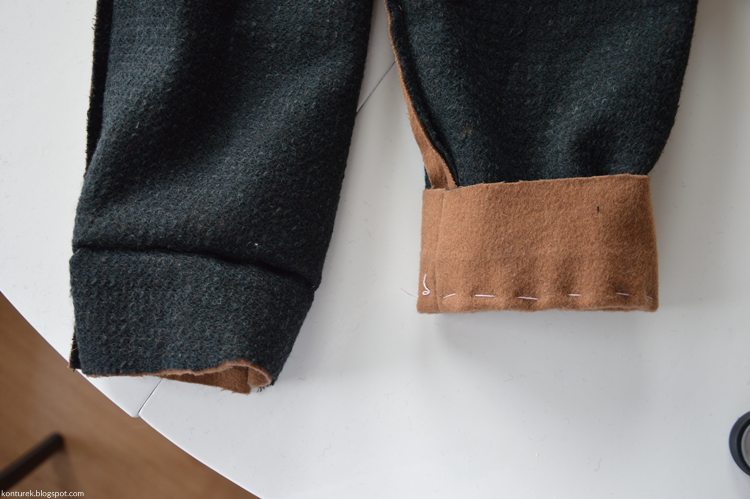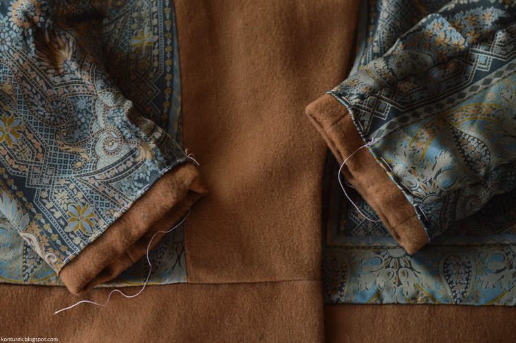 Zostaje mi wolny dolny brzeg płaszcza i niezszyte ze sobą dolne brzegi rękawów (z podszewki i tkaniny wierzchniej).