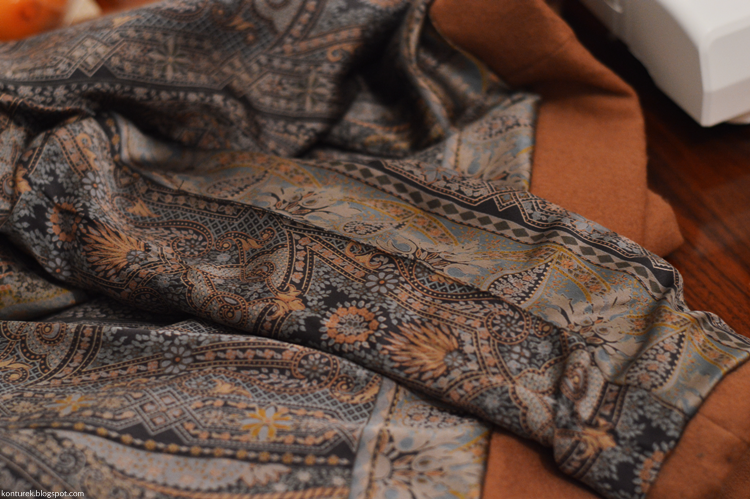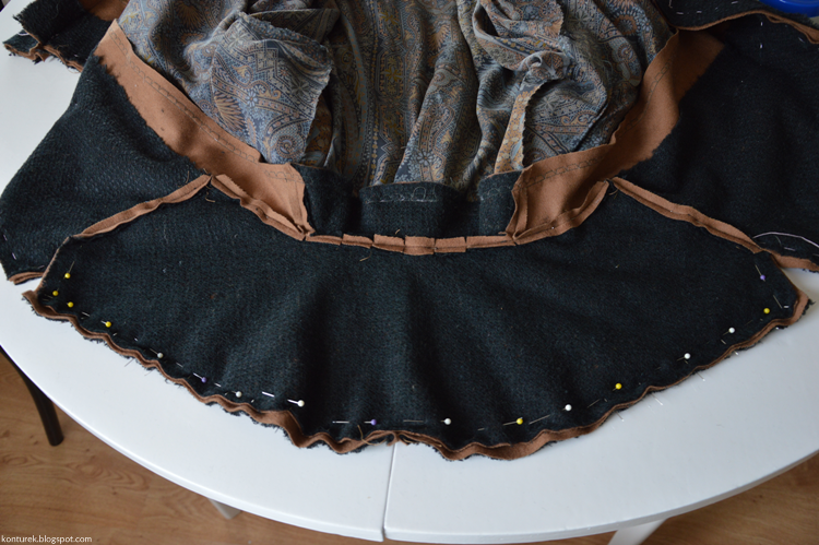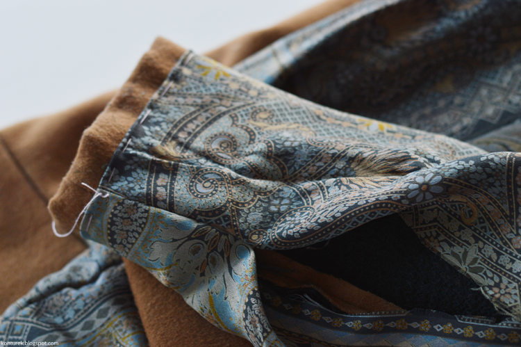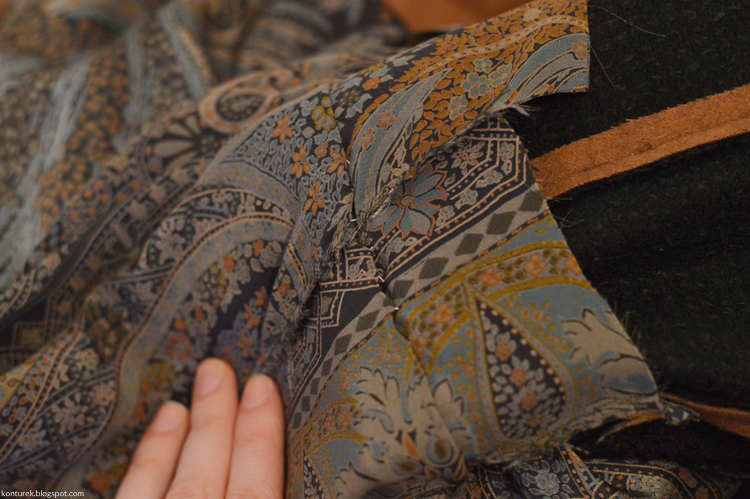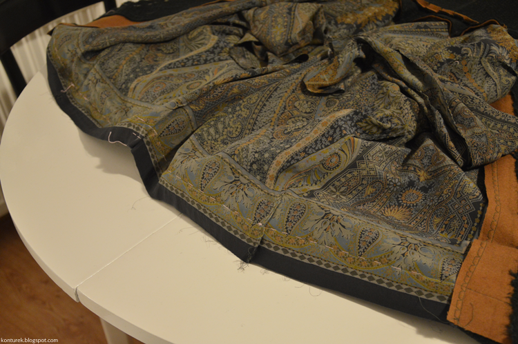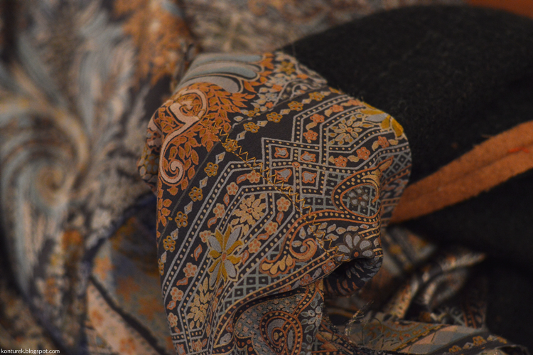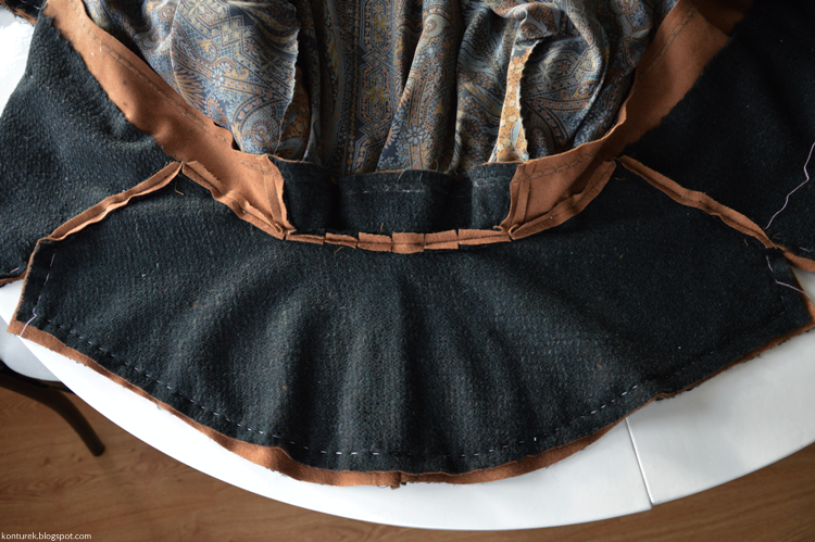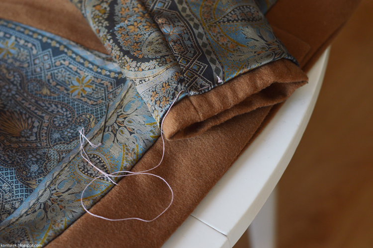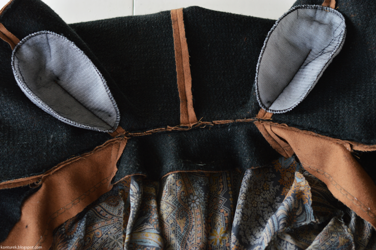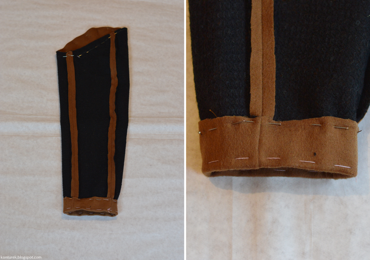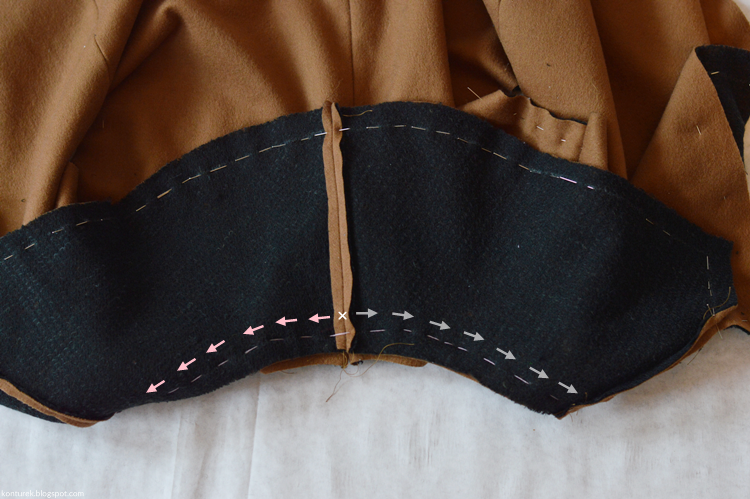 Zostaje mi wolny dolny brzeg płaszcza i niezszyte ze sobą dolne brzegi rękawów (z podszewki i tkaniny wierzchniej).
