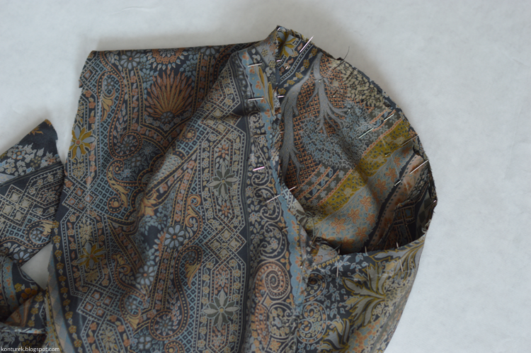 Ten manewr pozwoli mi równo przyszyć spód kołnierza do przodów. Ja z rozpędu zszyłam zaszewki, co było kompletnie niepotrzebne, zorientowałam się później, że się pospieszyłam i prułam, pardon...