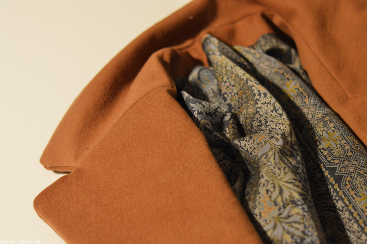 Choć ostatnio z Burdą mi nie po drodze, prenumerata przychodzi sobie jak chce, to ten wykrój absolutnie podbił moje serce, a że nie miałam co zrobić z wełnianym kocem o jedwabnej podszewce za 10 zł, było oczywiste, że skończy jako okrycie wierzchnie.