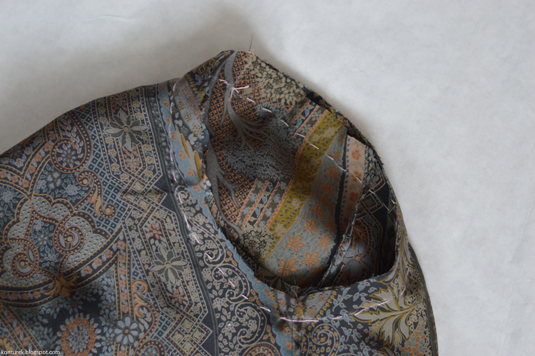 Teraz przyszywam ręcznie poduszki na ramiona wzdłuż szwu ramienia. Tu zalecają raglanowe, takie jak na zdjęciu.