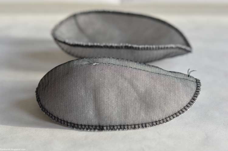 Do wyboru mamy również poduszki półksiężycowe, których używam tam, gdzie długość szwu ramienia jest dopasowana do mnie, a główki rękawów wdane. Kochana Pani z pasmanterii zawsze daje mi najmniejszy rozmiar poduszek, co bym nie wyglądała jak gwiazda popu z lat 80tych.