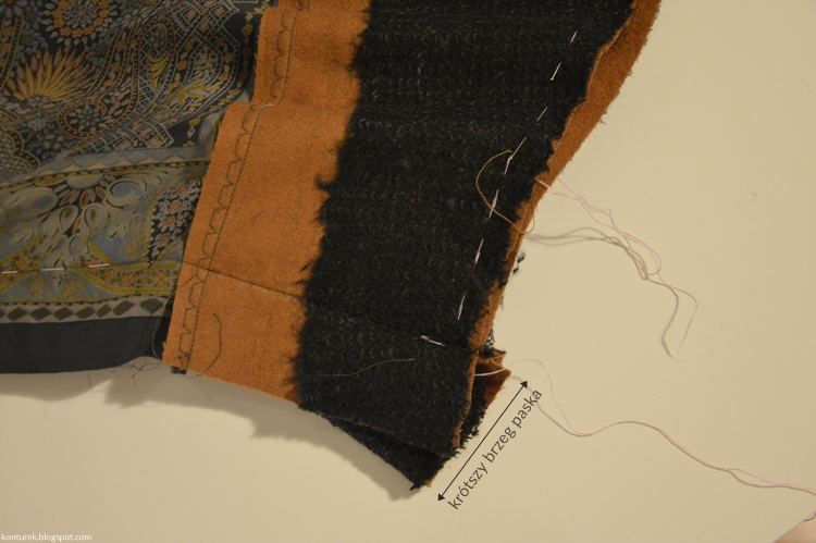 Szyję. Nadmiar zapasów obcinam. Krótszy brzeg paska należy sfastrygować (trochę kiepskie zdjęcie).