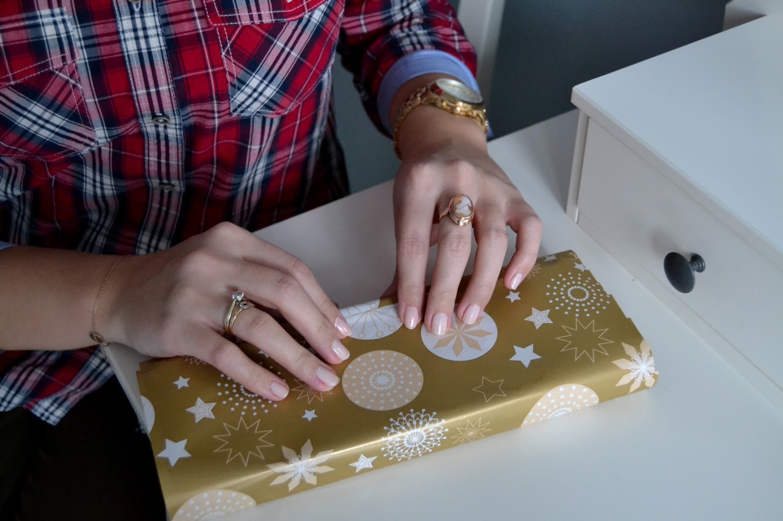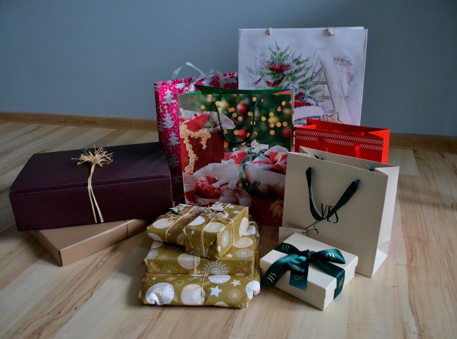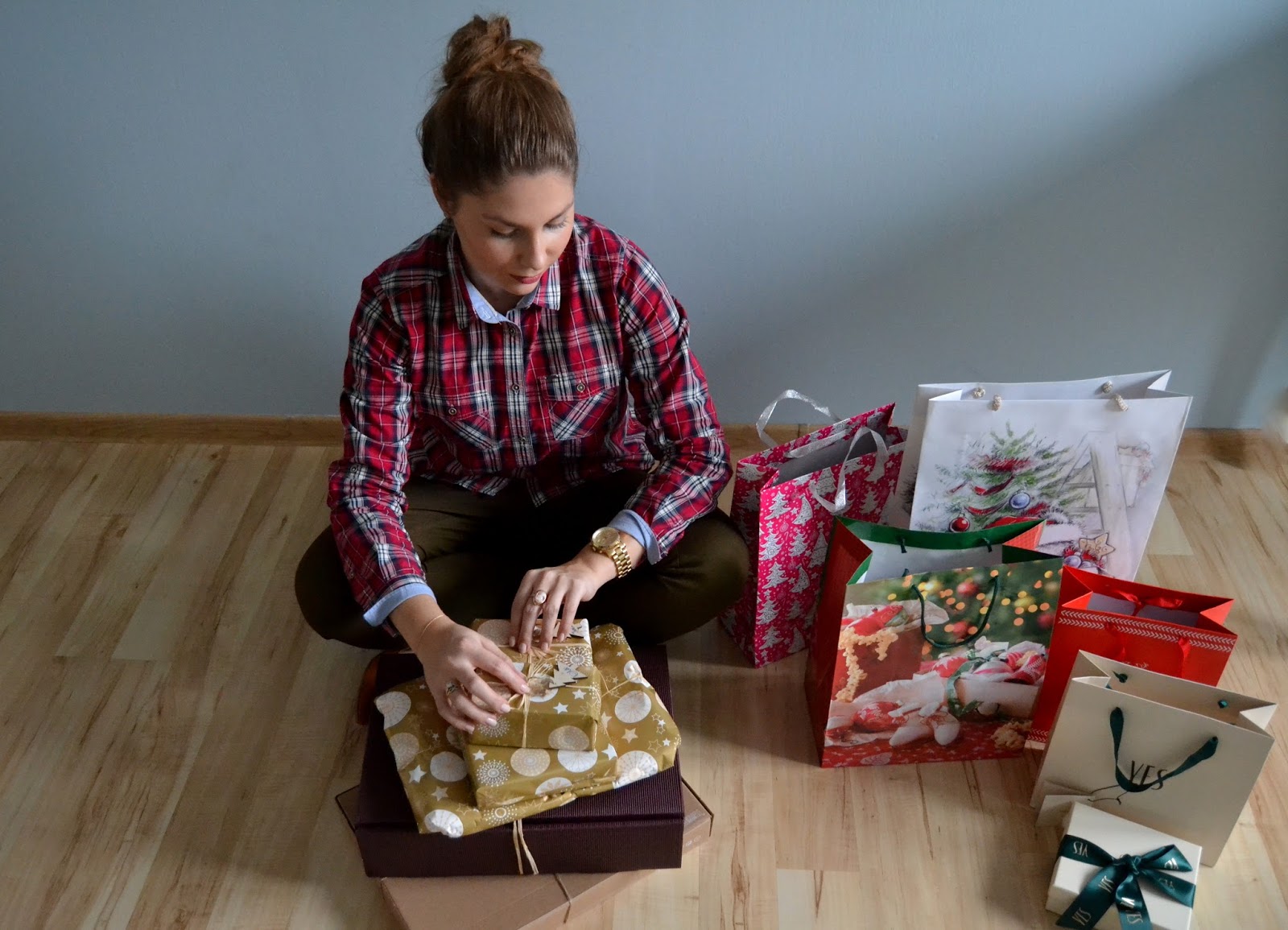 Święta tuż, tuż, nawet nie wiem, kiedy ten przedświąteczny czas minął. Ciągle w biegu, natłok obowiązków, świątecznych przygotowań i zakupów. Pakowanie prezentów dla najbliższych to mój ulubiony moment, słuchając przy tym świątecznych piosenek. W tym roku postawiłam na papier w złotym kolorze, który sam w sobie jest ozdobą i nie wymaga dodatków. Już jutro Wigilia, dlatego chciałabym złożyć każdemu z Was wspaniałych świąt spędzonych w rodzinnej atmosferze, pysznych potraw na wigilijnym stole, aby to Boże Narodzenie było okazją do odpoczynku. od codziennego zabiegania, samych pomyślnych dni, wielu sukcesów w życiu prywatnym i zawodowym, optymizmu każdego dnia oraz spełnienia marzeń!