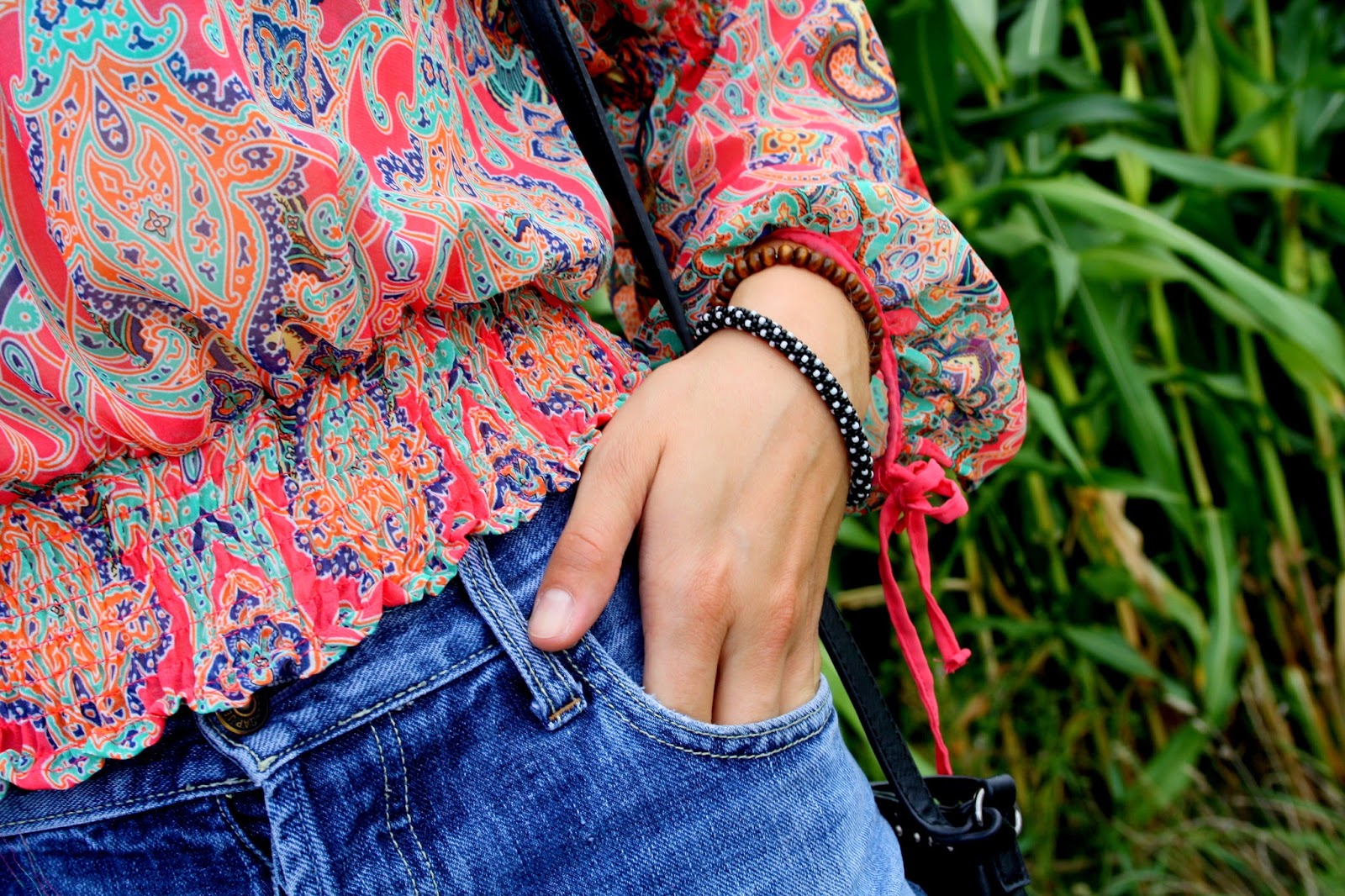 Zobacz oryginał ndz., 25/09/2016 - 16:46Hi!Prezentuję piękną,wzorzystą bluzkę hiszpankę w stylu hippie.Połączyłam ją z szortami diy i sportowymi butami.Dodatki to moja ulubiona torebka z frędzlami.Noszę ją prawie wszędzie.Okulary są bardzo oryginalne.Całość tworzy ciekawy look. Zapraszam do oglądania!