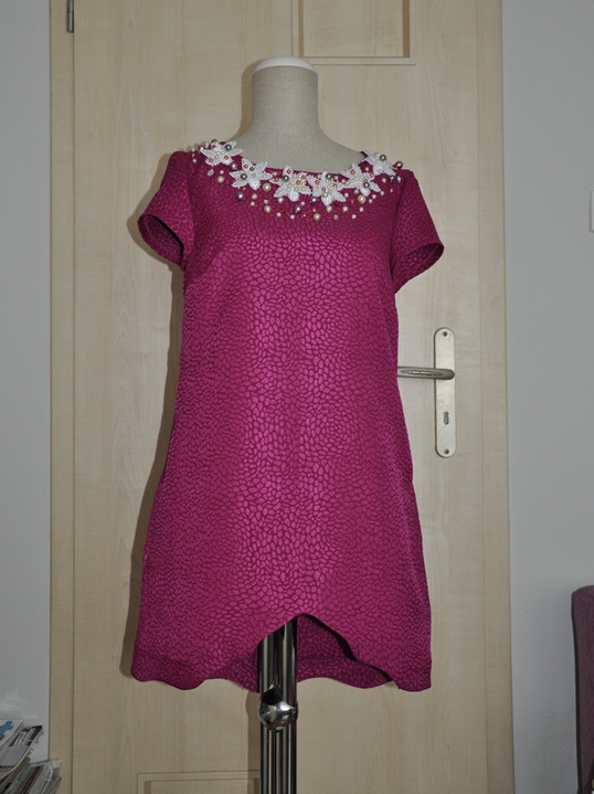 Co do tkaniny to żakard, pochodzi z Textilmaru, na zdjęciach wygląda jakby się świecił a to tylko wina lampy błyskowej. Wczoraj właśnie miałam okazje być w jednej z hurtowni tkanin w Poznaniu, gdzie moim ulubionym miejscem jest kosz z resztkami tkanin, dlaczego, bo ceny tkanin na półkach przerastają moje możliwości finansowe :(