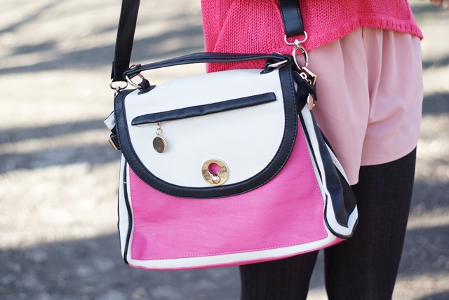 Pink is often referred to color of 'plastic' girls, barbies or other dolls. I don't agree with this conviction, because it's very nice color and I like to wear it (and I'm not a barbie! ;)). In today's outfit I've mixed different tones of pink with black, brown and white. My look is very girly, freely and I feel really good wearing this. The sweater is my favorite from all clothes in this outfit and when I saw if I was thinking something like "OMG, I must have it!". I also love my new shoes, they are brilliant for walking every day (not only for horse riding) and much more comfortable than heels or wedges.
