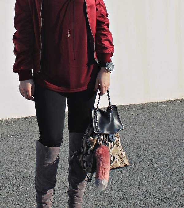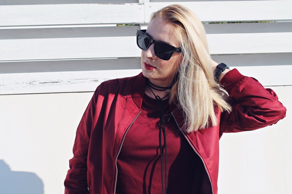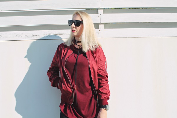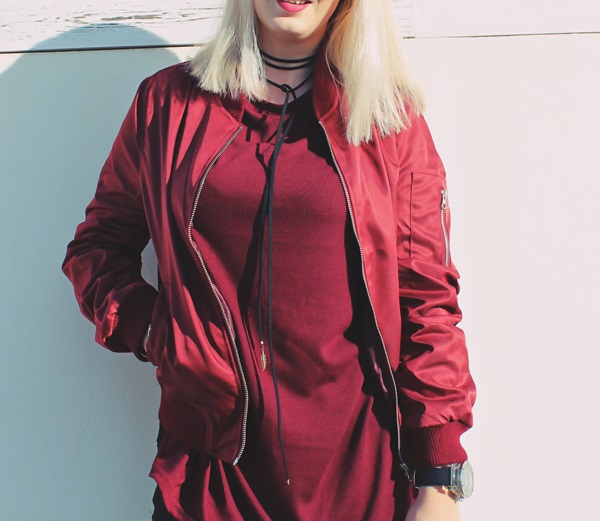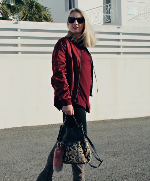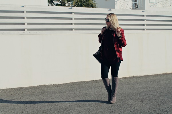Abstrahując od faktu, że kocham ten bordowy odcień, ponieważ pięknie komponuje się z kolorem czarnym, kocham sposób, w jaki równie dobrze łączy się z szarym. Szukałam idealnej kurtki w chłopięcym stylu i znalazłam ją na sammydress. Jestem bardzo zadowolona z tego zakupu. Dajcie mi znać, czy podoba Wam się ten wygląd.