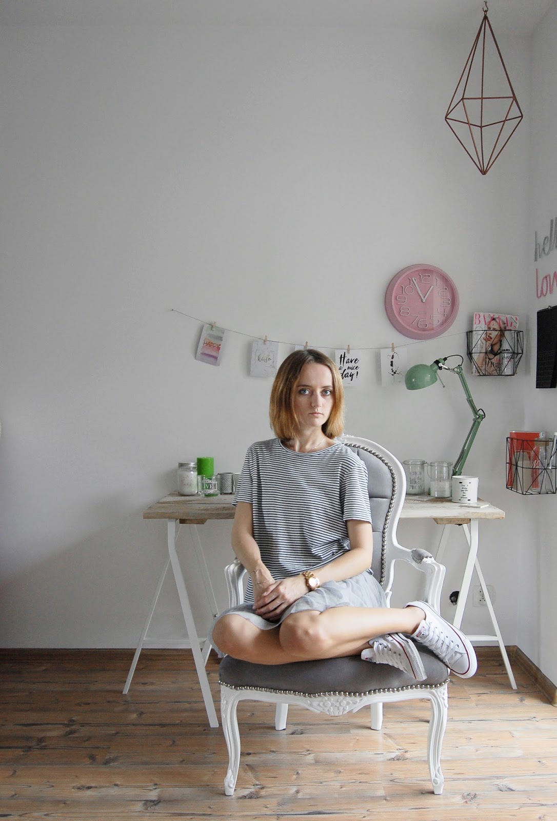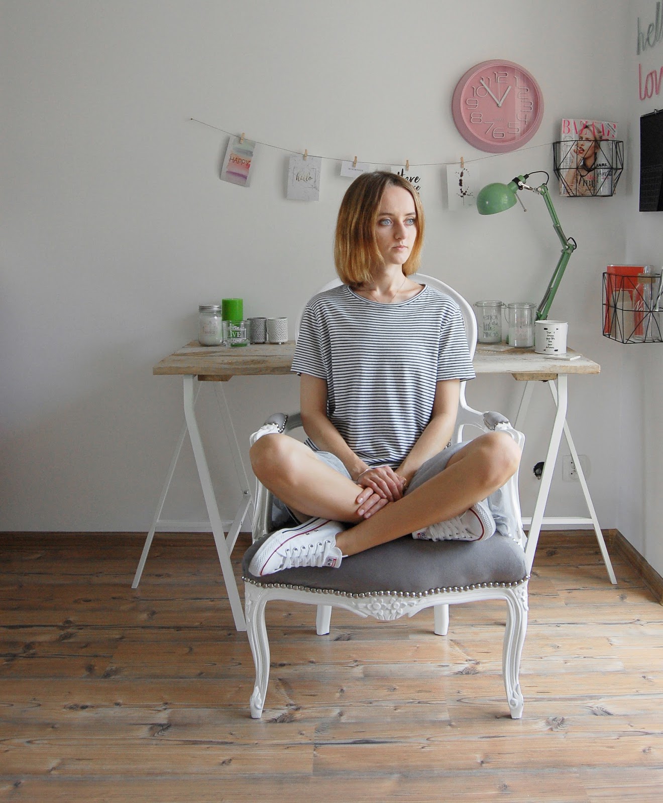 Na początku obawiałam się, że będzie zbyt niski, ponieważ na zdjęciach wyglądał na mega niziutki, ale zaryzykowałam (oczywiście wcześniej porównując jego wymiary z dotychczasowym krzesłem).