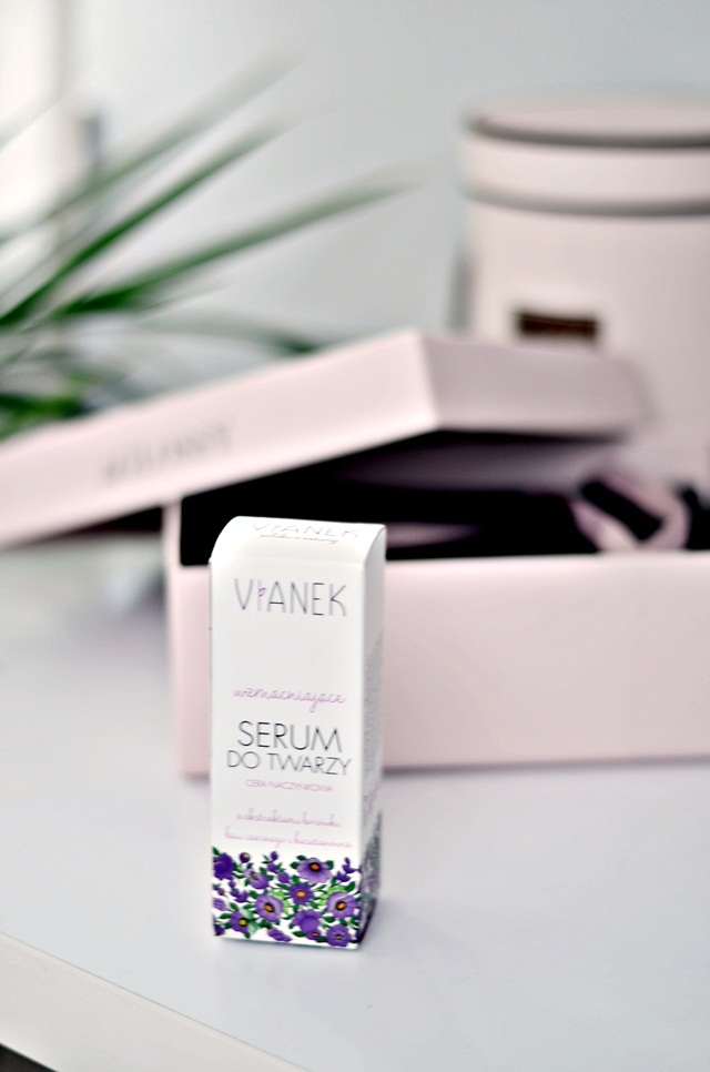 Serum ma za zadanie zniwelować naczynka i dobrze działać na cerę naczynkową. Jak wiecie ja nie mam takiego problemu, więc wolę nie używać czegoś czego nie potrzebuję. Pomijając to z marką VIANEK również znam się nie od dziś i to znów dzięki beGLOSSY! Teraz w mojej łazience wszędzie są "wianki". Od peelingów przez żele pod prysznic po kremy do twarzy! Pokochaliśmy się ze wzajemnością.