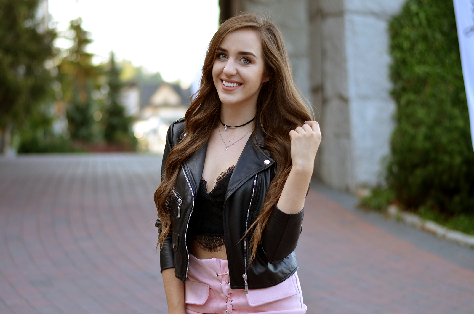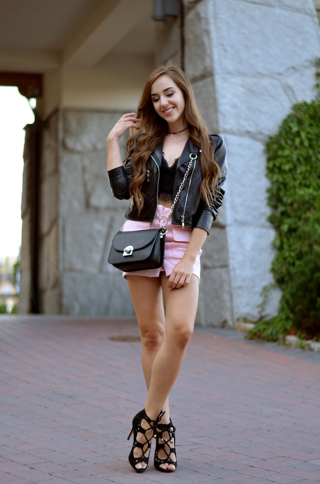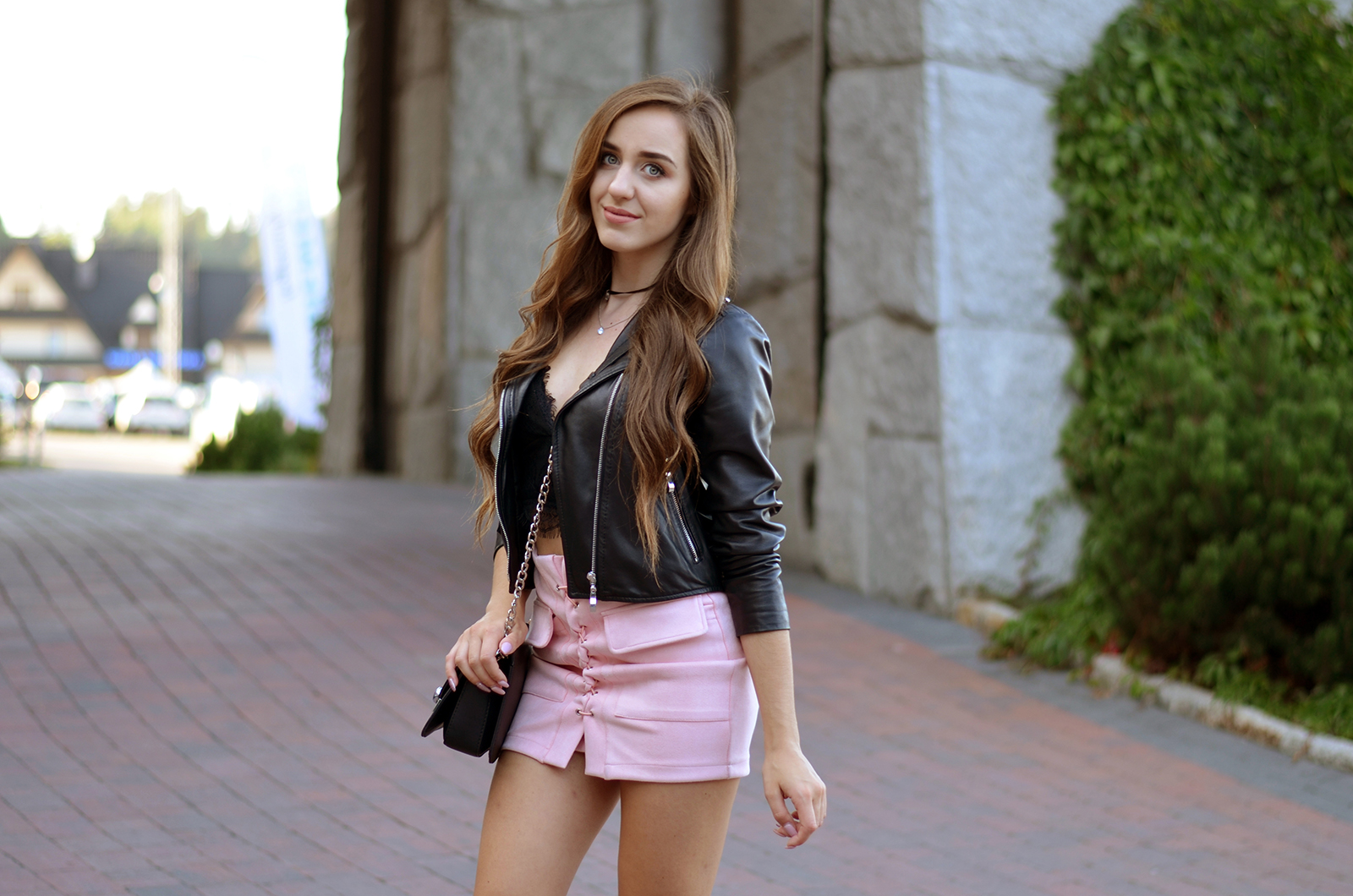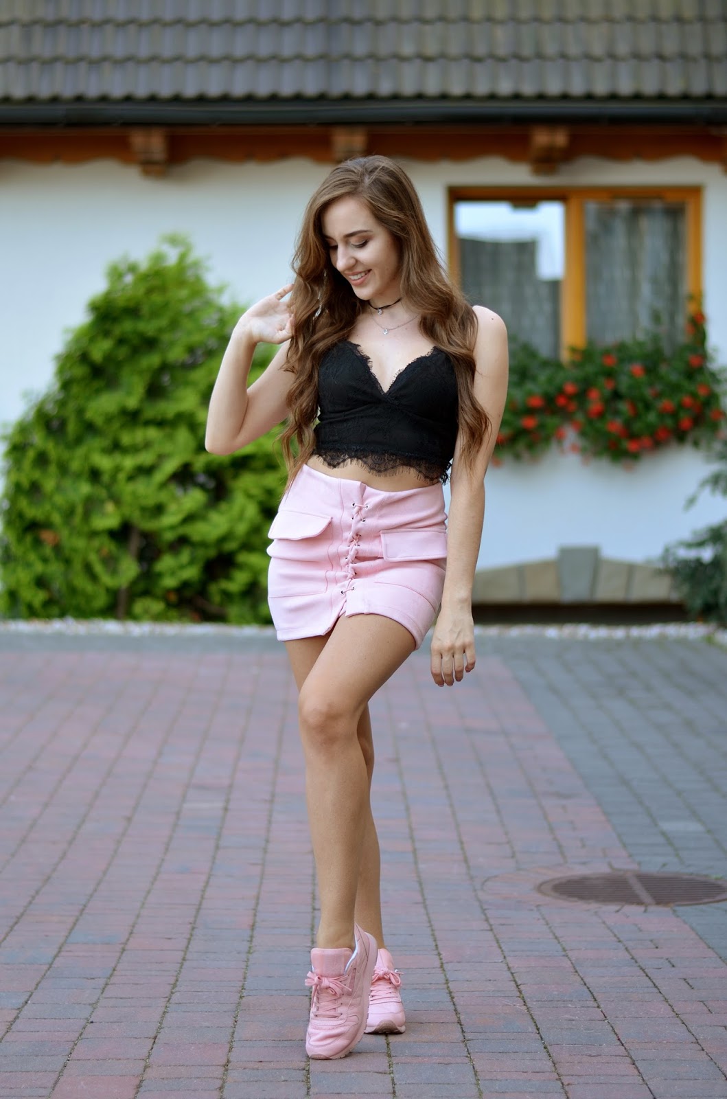 Zobacz oryginał ndz., 03/09/2017 - 18:00Witajcie:) Dawno nie było tutaj wpisów na 2 sposoby, które bardzo lubiłam dawniej robić. Czasami wystarczy zmienić tylko buty czy dodatki lub coś dołożyć, aby stylizacja nabrała innego charakteru. Dlatego prezentuję Wam różowa spódnicę na 2 sposoby w wersji dziennej oraz na wieczór. Spódnica pojawiła się już zimą na moim blogu, jednak jak się okazało latem sięgałam po nią dużo chętniej (głównie ze względu na jej kolor). W pewnym momencie była totalnym hitem, więc podejrzewam, że część z Was ma podobną w swojej szafie, dlatego propozycja jest praktyczna. Dobrałam do niej krótki koronkowy top oraz podwójny choker (chociaż w wersji dziennej dobrze będzie wyglądać prosty delikatny łańcuszek, którego ze względu na pośpiech nie wzięłam na sesję;). Dzienną wersję mogliście już widzieć na moim instagramie @balaczka tutaj. Oczywiście w tym przypadku postawiłam na wygodne reebok classic w kolorze zbliżonym do spódnicy i w takim wydaniu czułam się super. Wiecie, że lubię delikatny eklektyzm (łączenie elementów z różnych stylów) w tym wypadku koronki z obuwiem sportowym. W wersji na wieczór zamieniłam oczywiście reeboki na szpilki z wiązaniami oraz dołożyłam torebkę i ramoneskę, którą w szafie ma chyba większość z nas:) Dajcie znać który set podoba Wam się bardziej i jak Wy skompletowałybyście ten zestaw. Może coś byście zamieniły lub z czegoś zrezygnowały? jestem ciekawa Waszych opinii:)