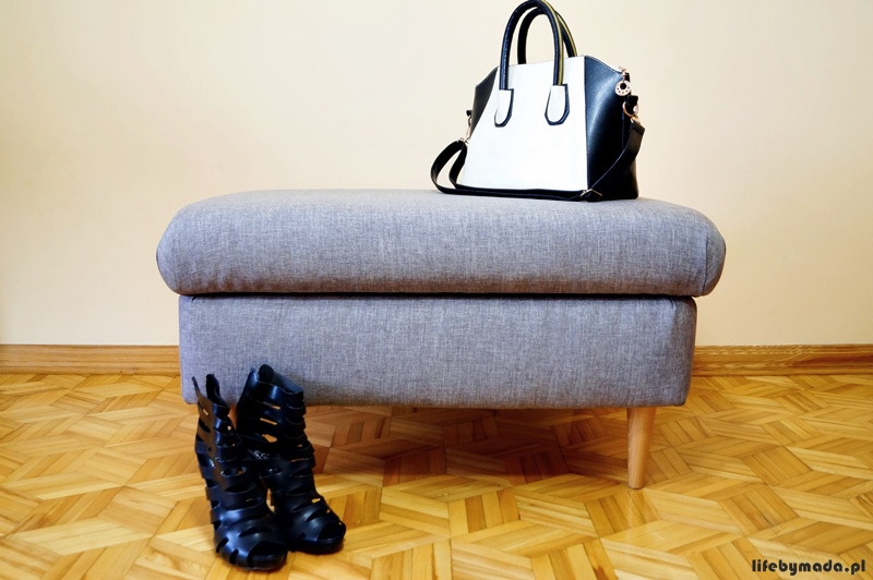 Uwielbiam z mężem razem tworzyć nowe rzeczy. Sprawia nam to mega wielki fun. Był już zagłówek do naszego łóżka, było biurko i mała podłużna pufa podnóżek (pokażę na blogu w przyszłości). Projektowanie i tworzenie mebli bardzo nam się spodobało i nie jest to już nasze pierwsze ani jeszcze ostatnie słowo. Już na instagramie wrzucałam zdjęcie tajemniczej nogi, nad którą pracowaliśmy, wreszcie przyszedł czas na odsłonę.