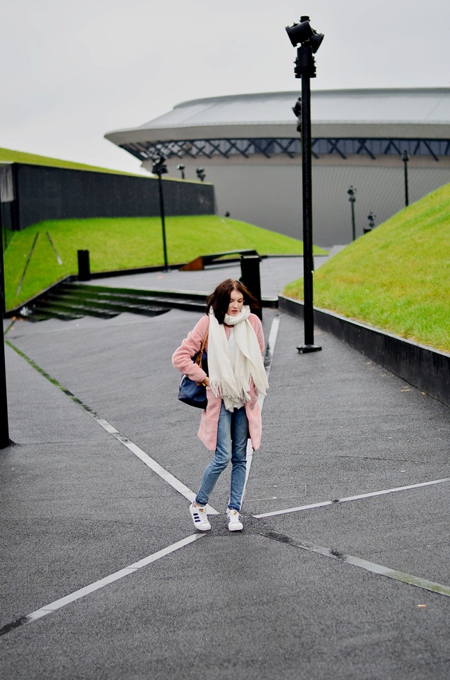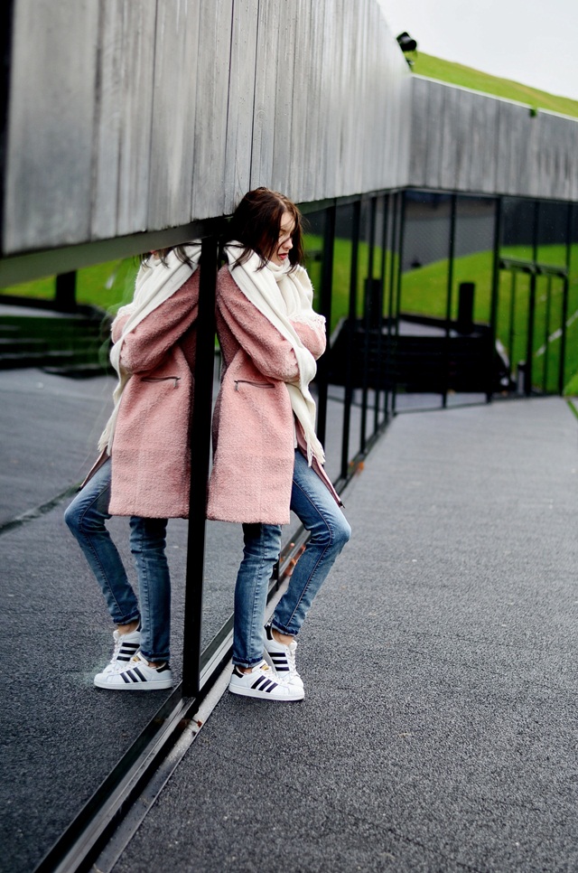 płaszcz- bonprix / spodnie- rosegal / buty- Adidas (szch) / szalik- Reserved / zegarek- Daniel Wellington / bransoletki- bydziubeka, modotikon / torebka- monnari (kolorowysklep)