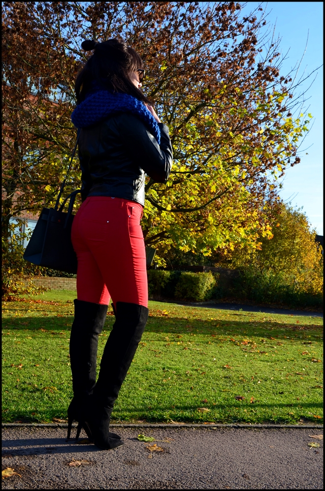 Red Jeans and Leather Jacket