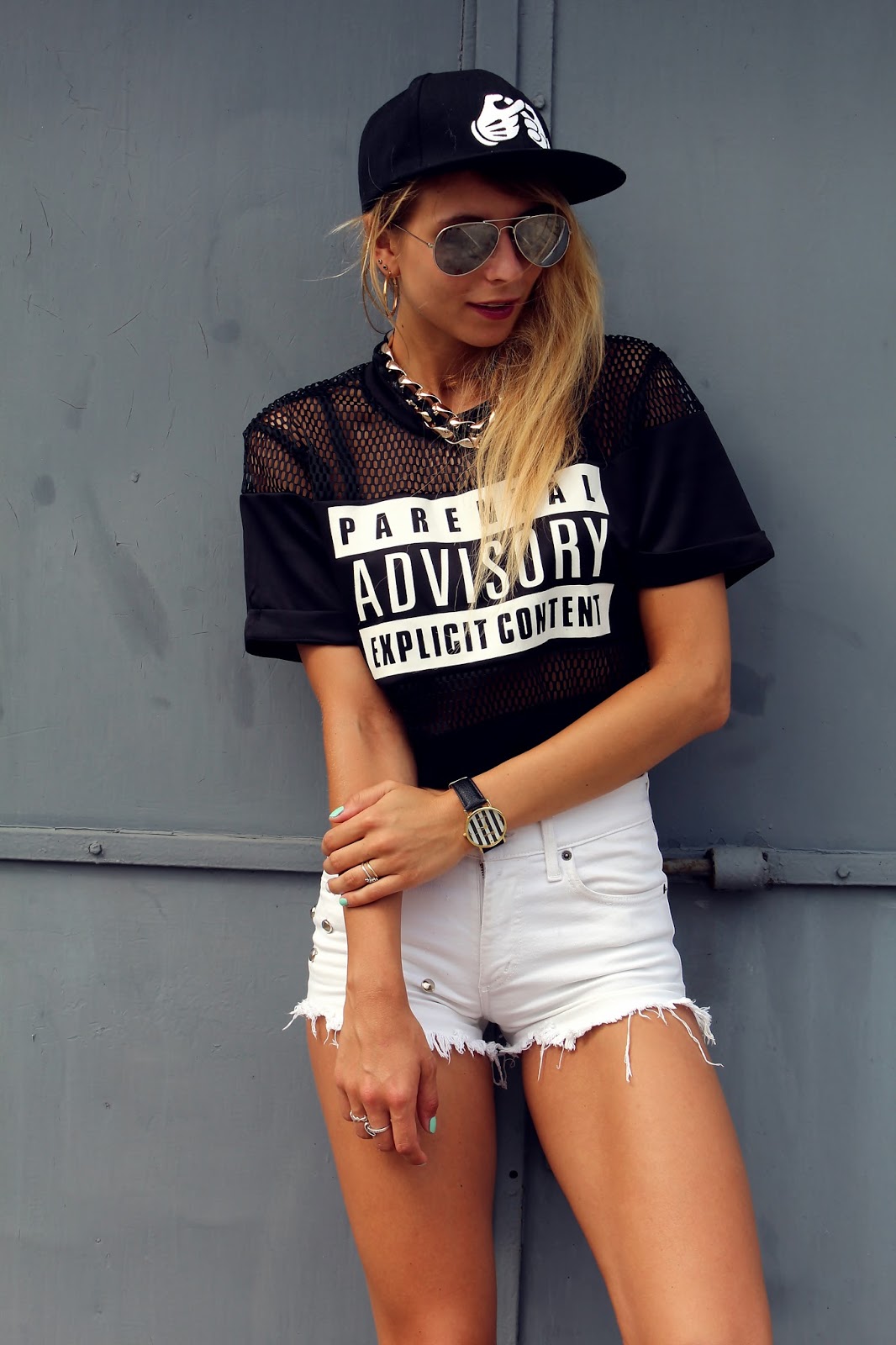 Sportowe obuwie, niegdyś kojarzone z siłownią i dyscyplinami sportu, dziś świecą triumfy w świecie mody. Znajdziemy je w szafie każdej miłośniczki mody. Kochamy je za to, że są bardzo wygodne i pasują niemalże do wszystkiego – od spodni, szortów przez spódnice, aż po sukienki. Ogromny wybór fasonów, wzorów i kolorów, sprawia, że każda znajdzie coś dla siebie. Już nie raz wspominałam jak bardzo lubię casualowe wydania. Choć często wybieram eleganckie zestawienia to jednak połączenie szortów, t-shirtu i adidasów jest moim ulubionym rozwiązaniem i dziś takowe reprezentuję. Na nogach mam reeboki, które ostatnio są często wybierane przez fashionistki.. Swoje upolowałam jakiś czas temu w lumpeksie. To jeden z moich lepszych łowów. Postawiłam na crop top z siateczką, który możecie dostać tutaj oraz przerobione przeze mnie szorty. Dodatek stanowi czapka, torebka, naszyjnik oraz zegarek. Jak Wam się podoba takie sportowe wydanie?